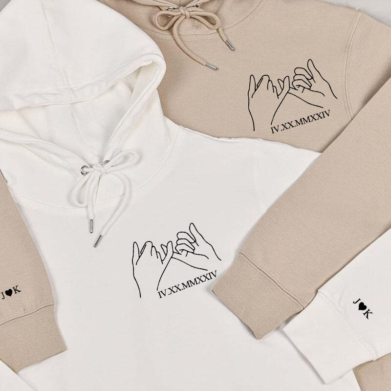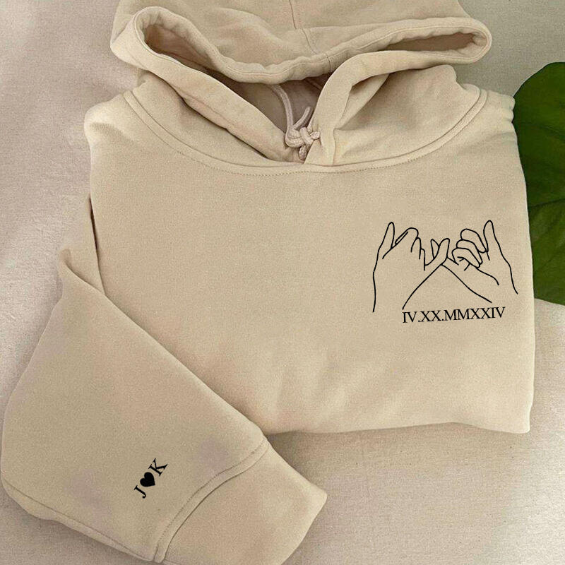 Personalized Hoodie Embroidered Pinky Promise with Custom Roman Numeral Date for Couple's Anniversary
