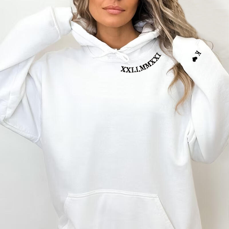 Personalized Hoodie Embroidered Roman Numeral Date and Initial Perfect for Couple's Anniversary