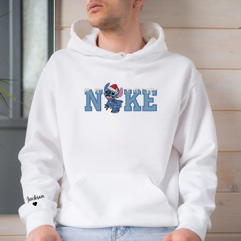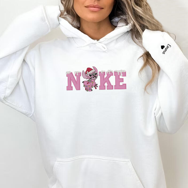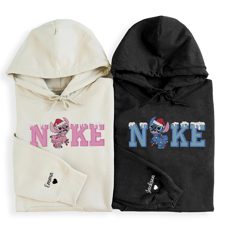 Personalized Hoodie Embroidered Stitch and Angel Light String Design Perfect Christmas Gift for Couple