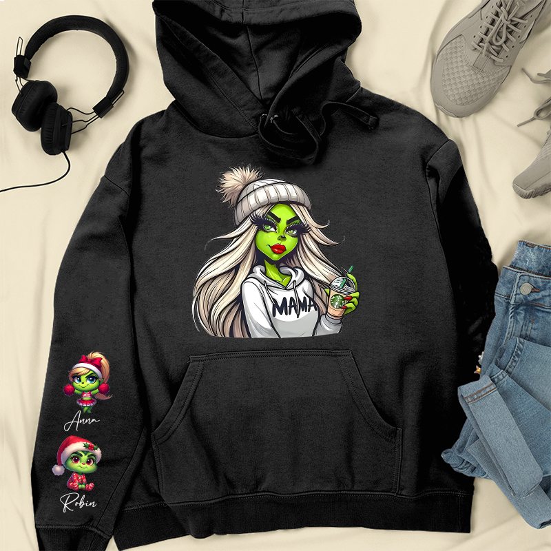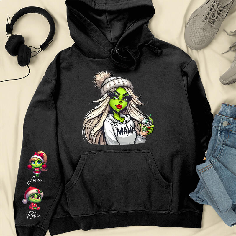 Personalized Hoodie Mama Custom Kid Names Cute Pattern Design Perfect Christmas Gift for Mom