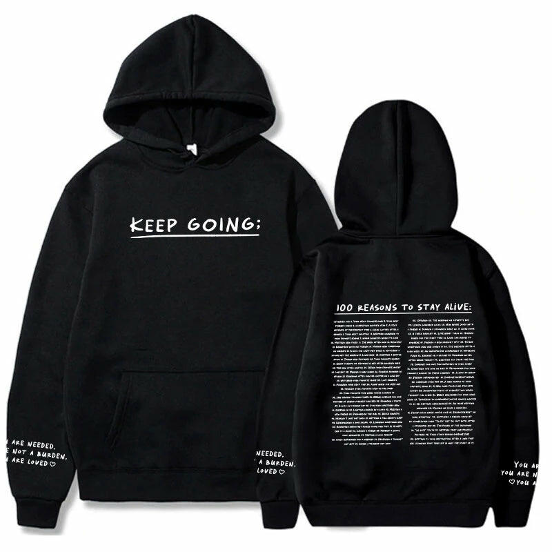 Personalized Hoodie Keep Going 100 Reasons To Stay Alive Warm Inspiring Gift for Friends