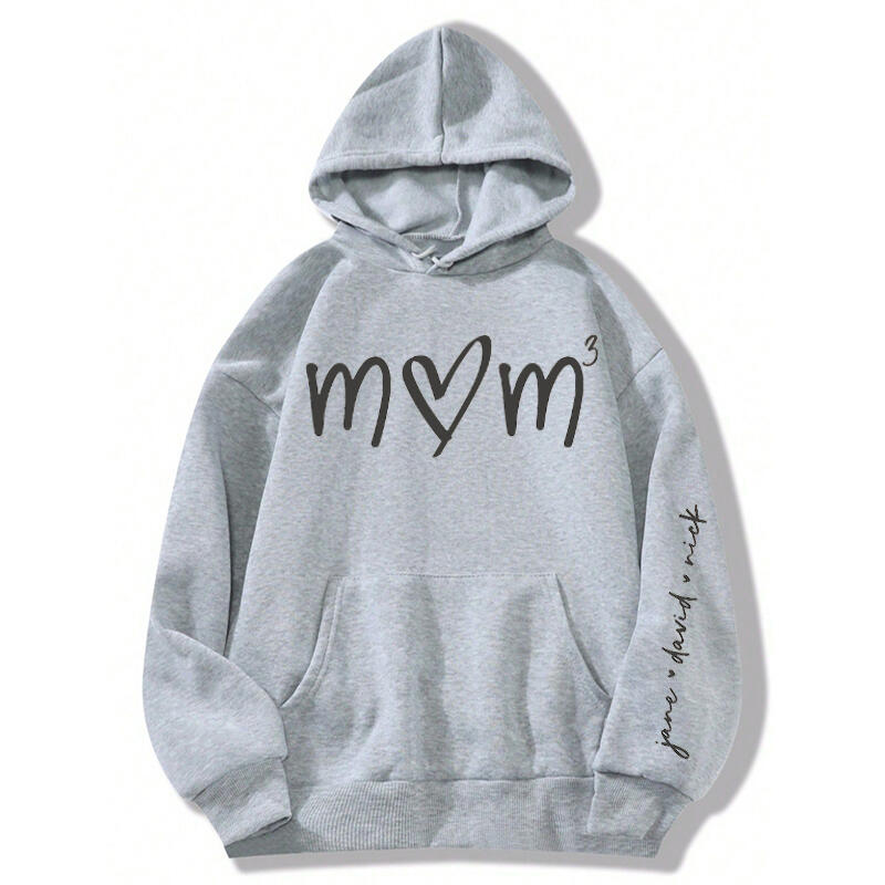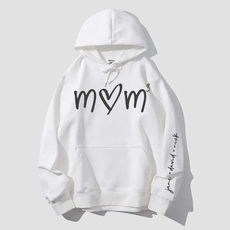 Personalized Hoodie Mom Heart with Kids Name on The Sleeve Unique Design Perfect Mother's Day Gift
