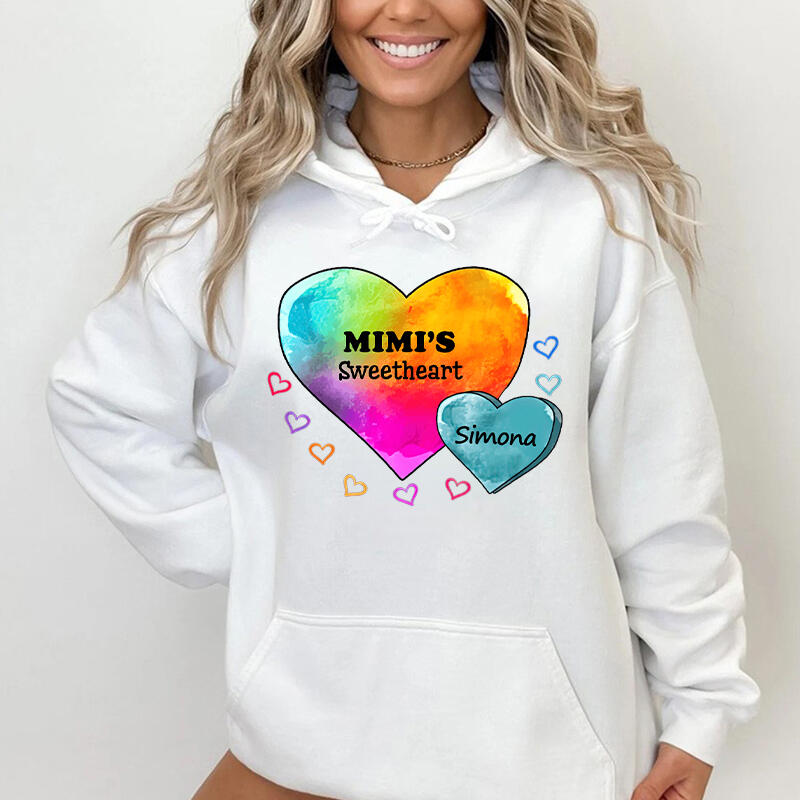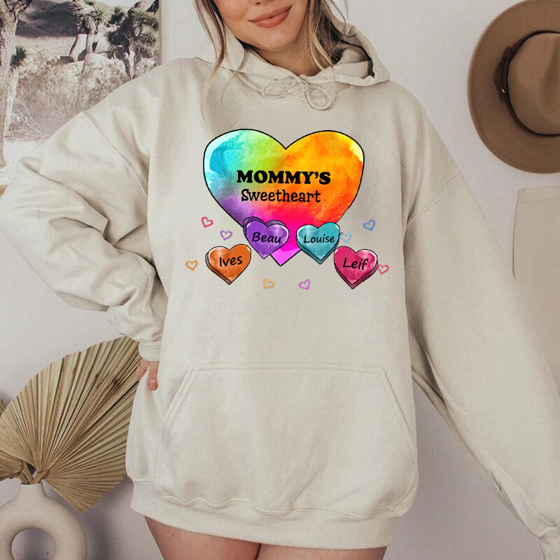Personalized Hoodie Mom's Sweetheart Custom Kids Name Colorful Heart Design Gift for Mother's Day