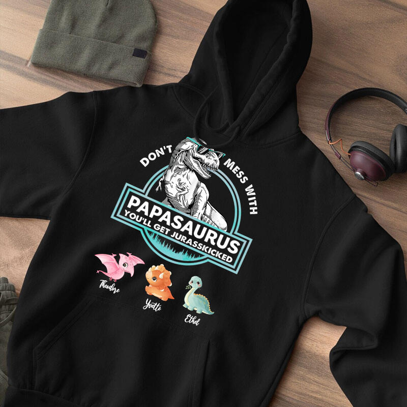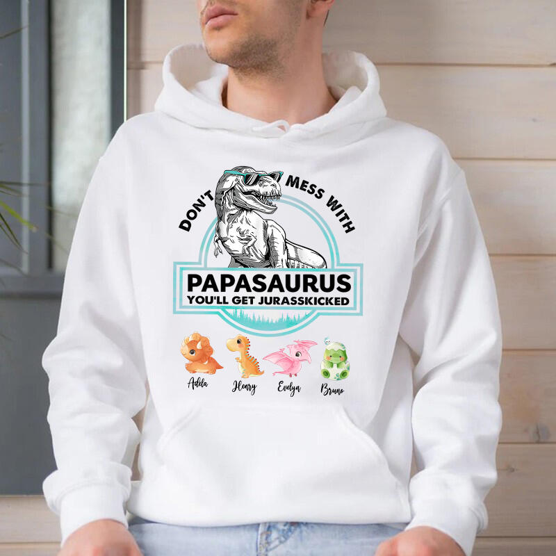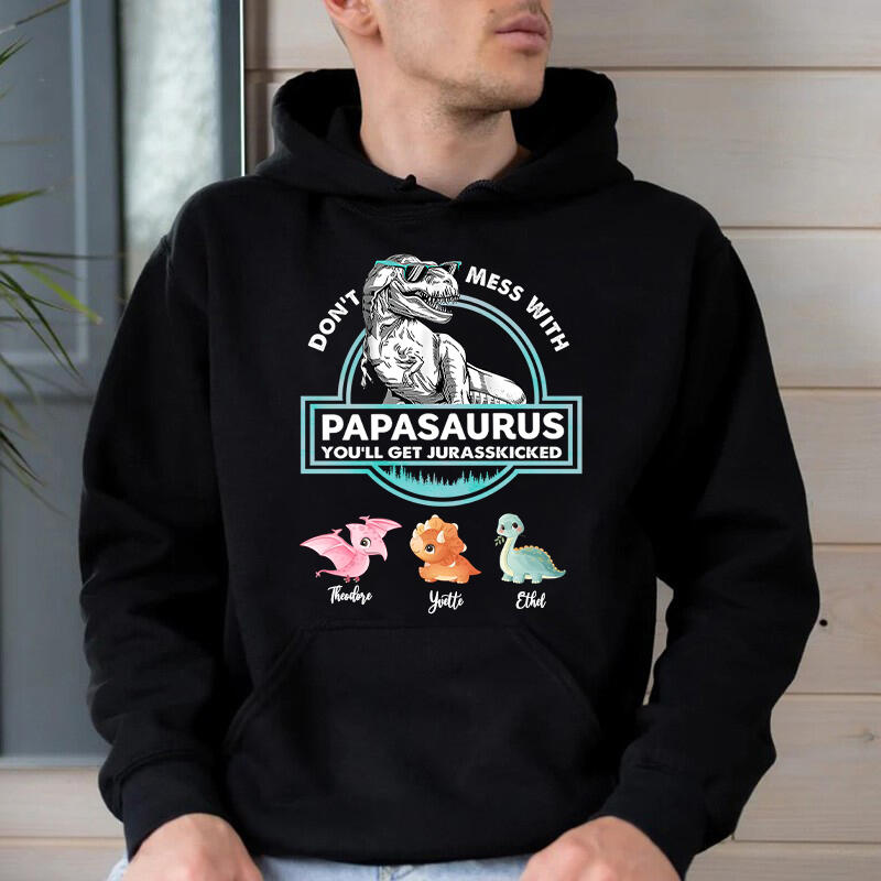 Personalized Hoodie Papasaurus Custom Baby Dinosaurs Pattern Design Perfect Father's Day Gift