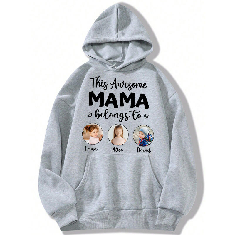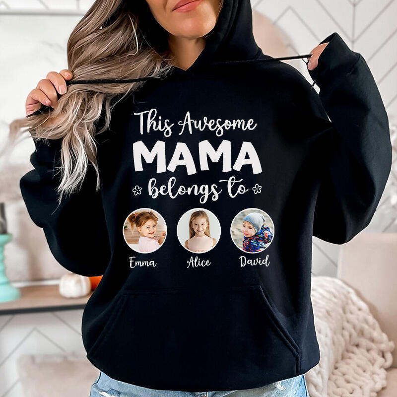 Personalized Hoodie This Awesome Mama Belongs To with Custom Photos Perfect Mother's Day Gift