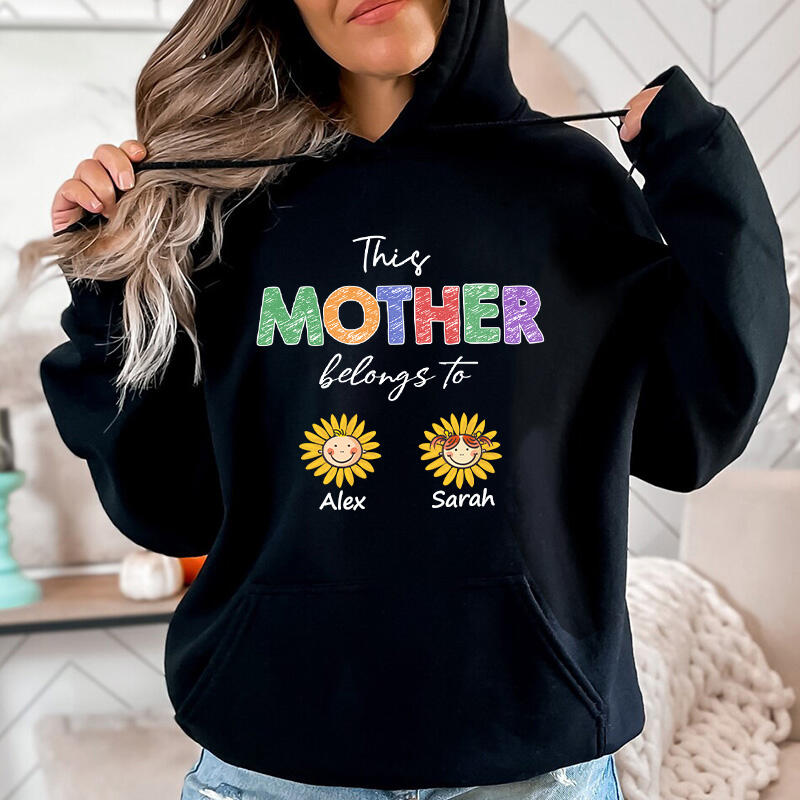 Personalized Hoodie This Mom Belongs To Kids Custom Sunflower Design Perfect Mother's Day Gift