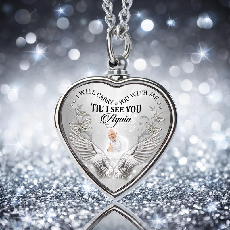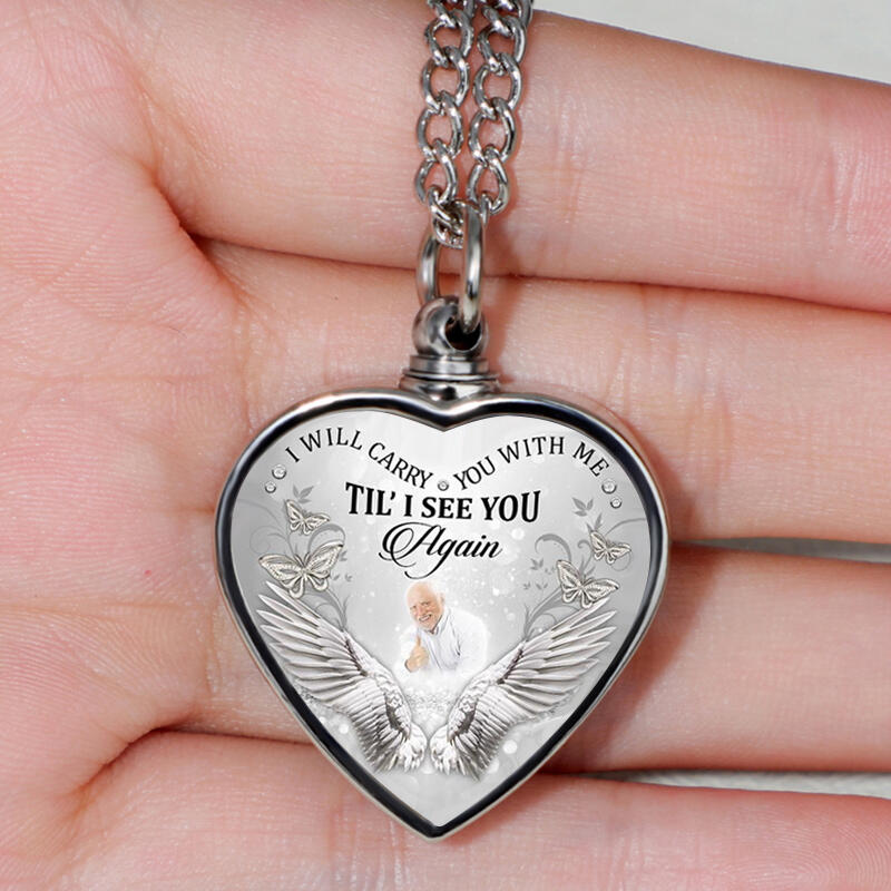 Personalized I Will Carry You with Me Memorial Picture Urn Necklace