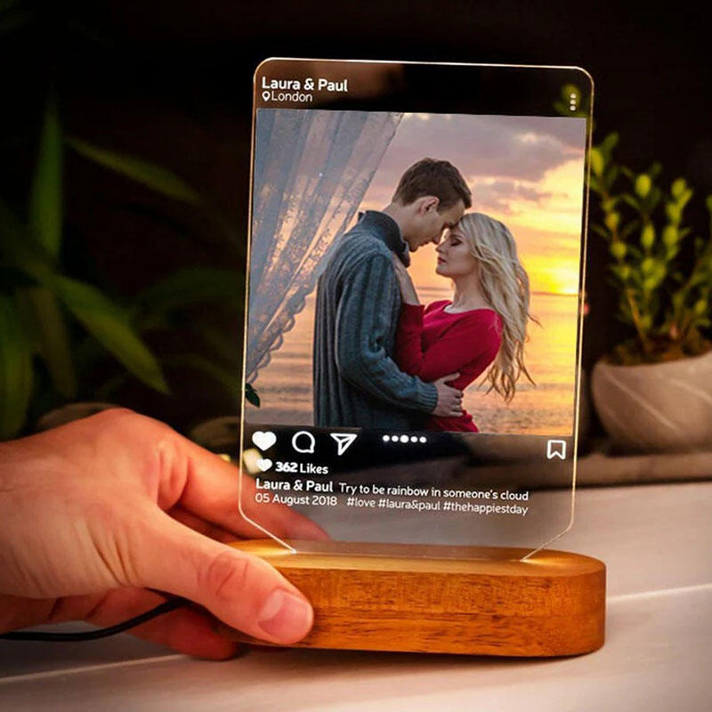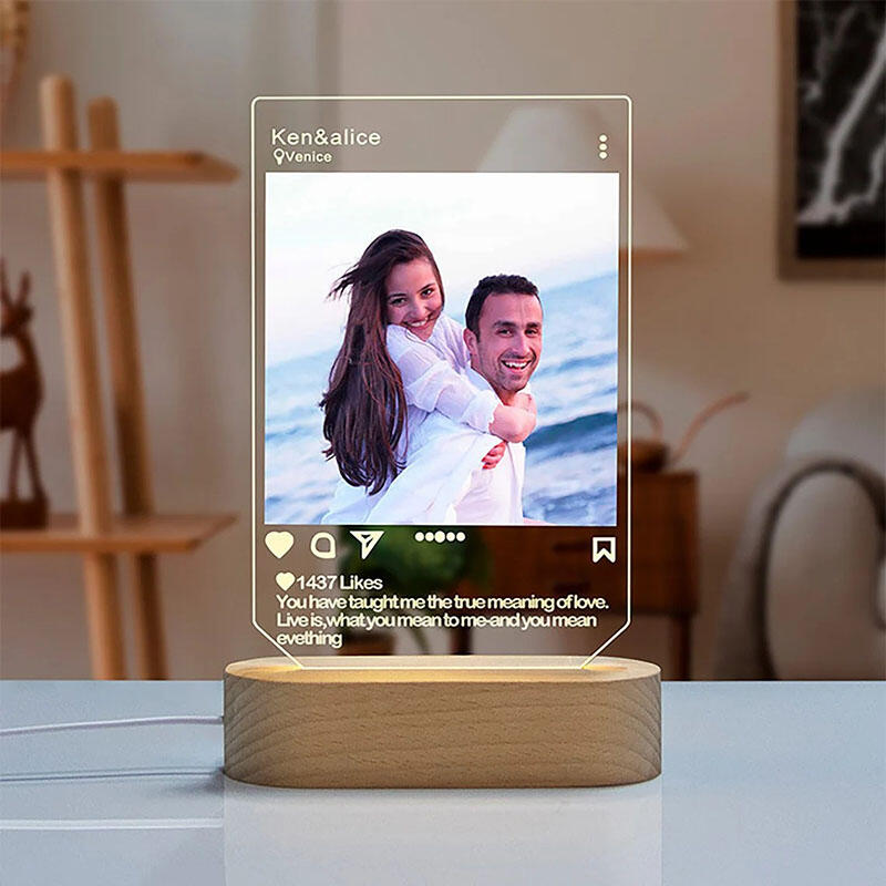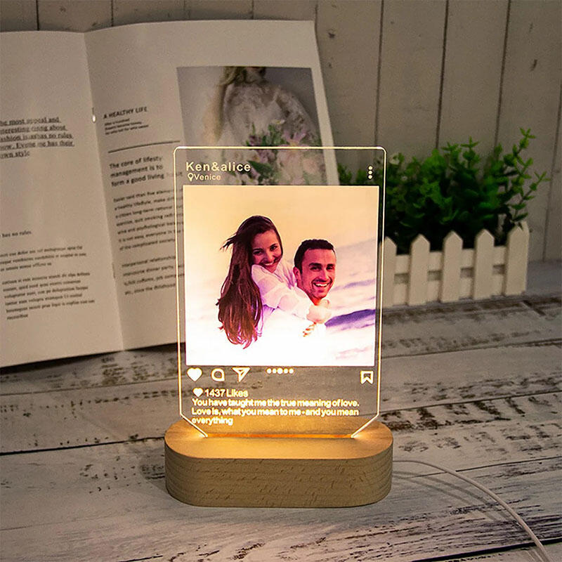 Personalized Ins Acrylic Night Light with Wood Stand for Couple