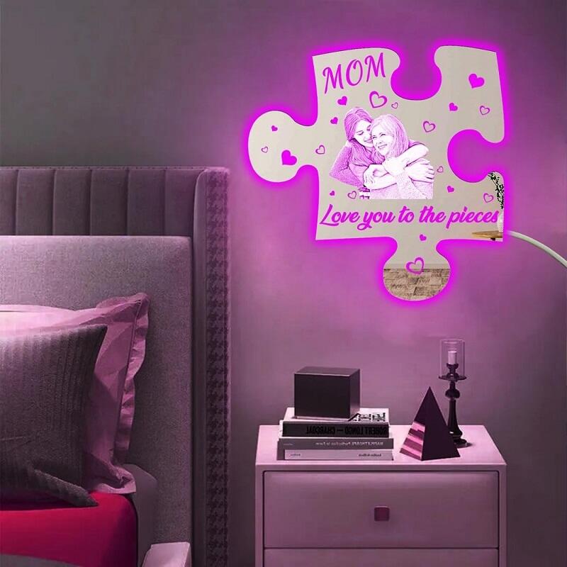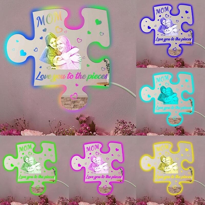 Personalized Jigsaw Mirror Light Customized Photo Mother's Day Gift