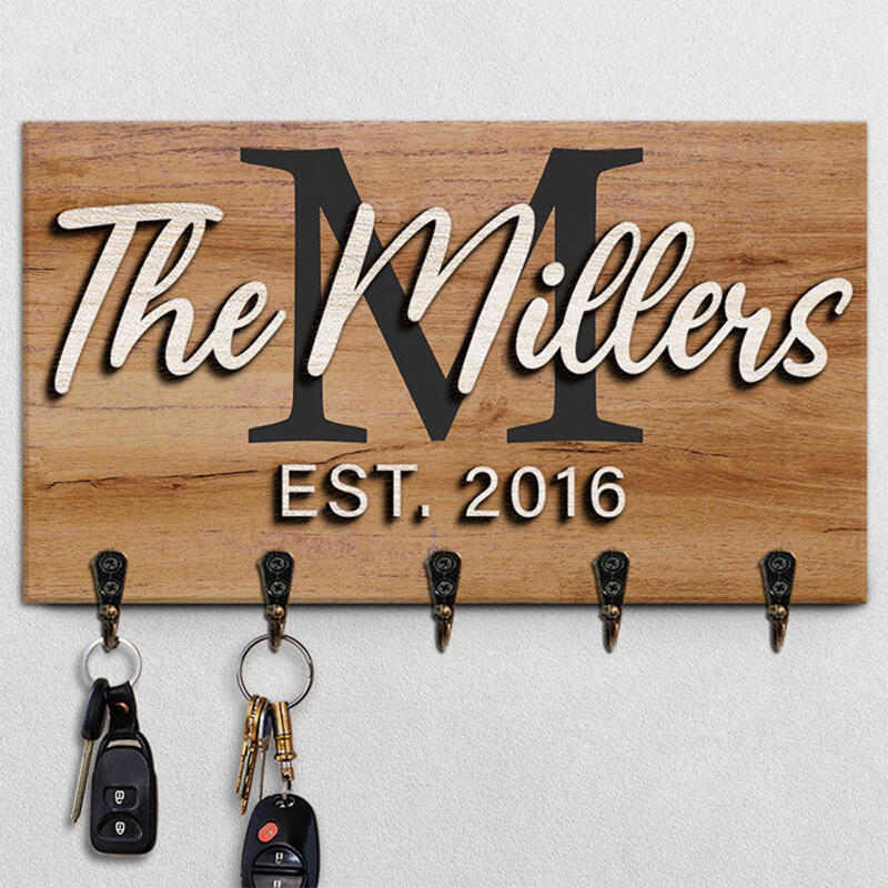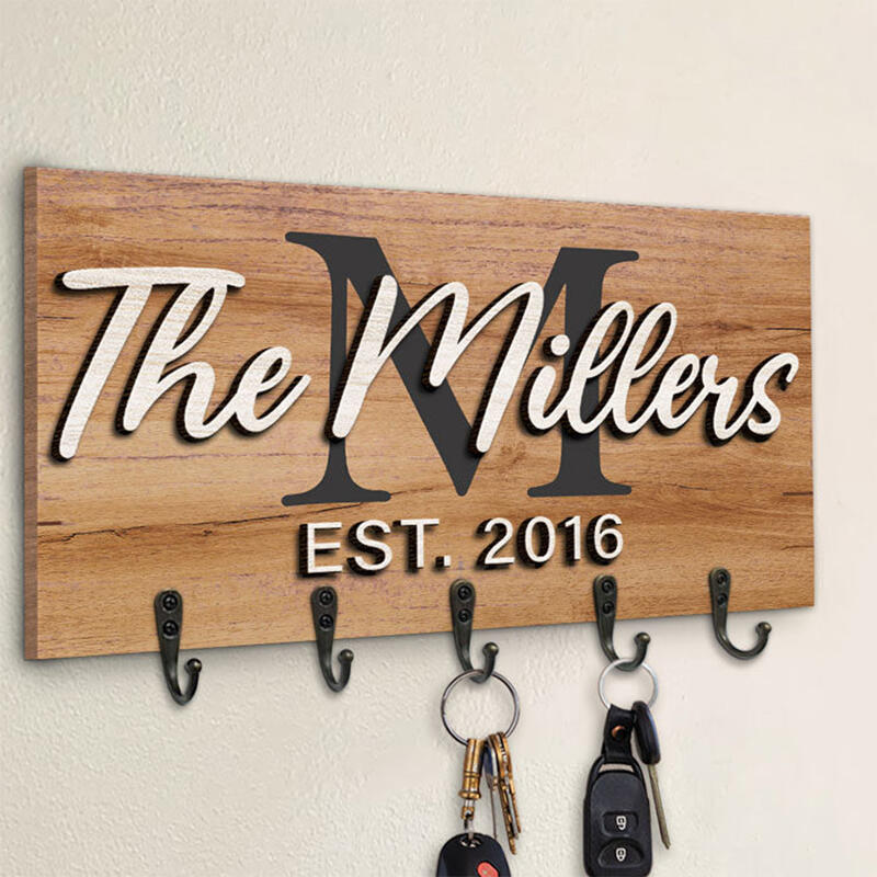 Personalized Key Hanger Custom Initial and Last Name Artistic Design Home Decor Gift for Family