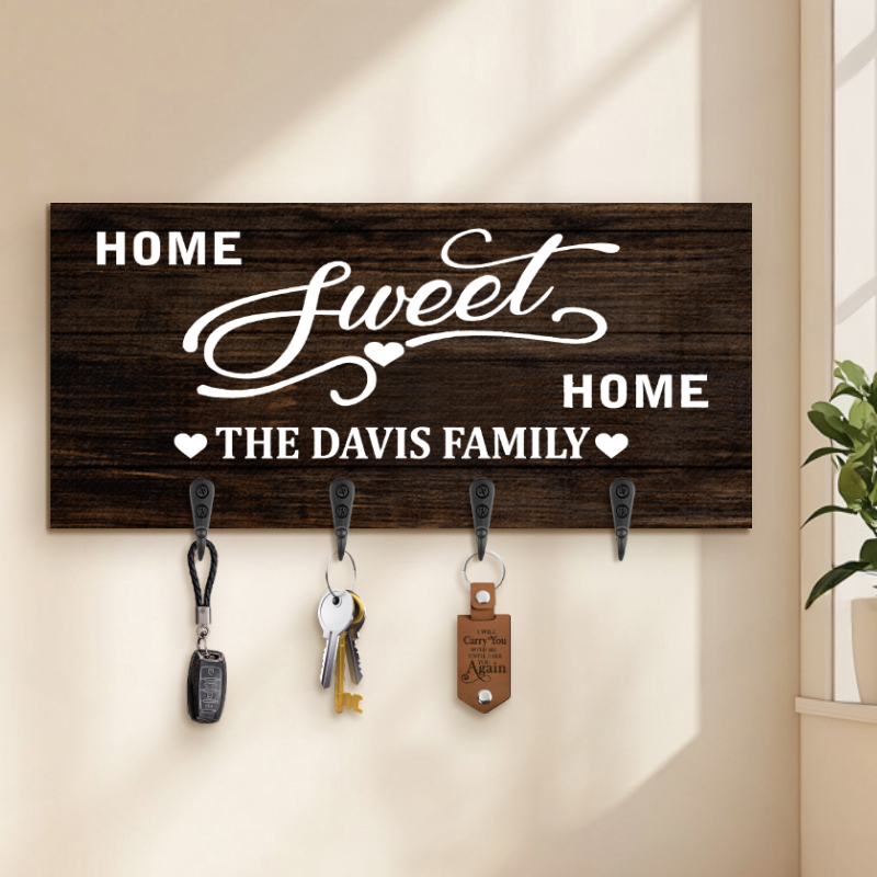 Personalized Key Hanger Sweet Home Custom Last Name Design Exquisite Home Decor Gift for Family