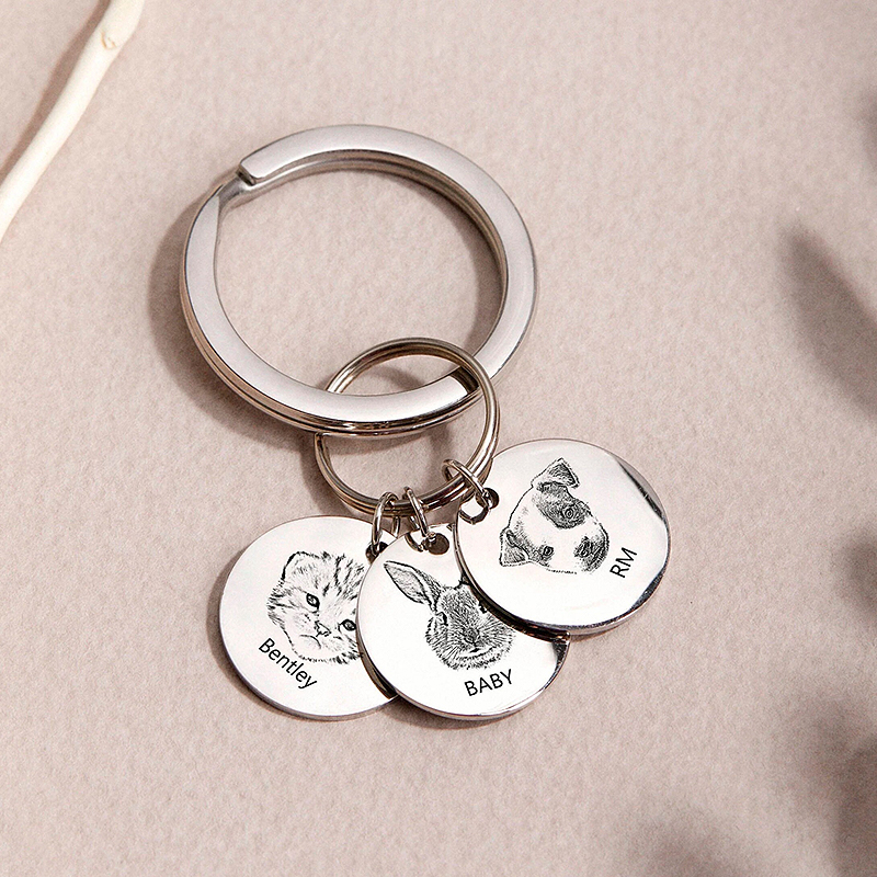 Personalized Keychain Custom Photos Pet Portrait and Name Unique Gift for Pet Lover