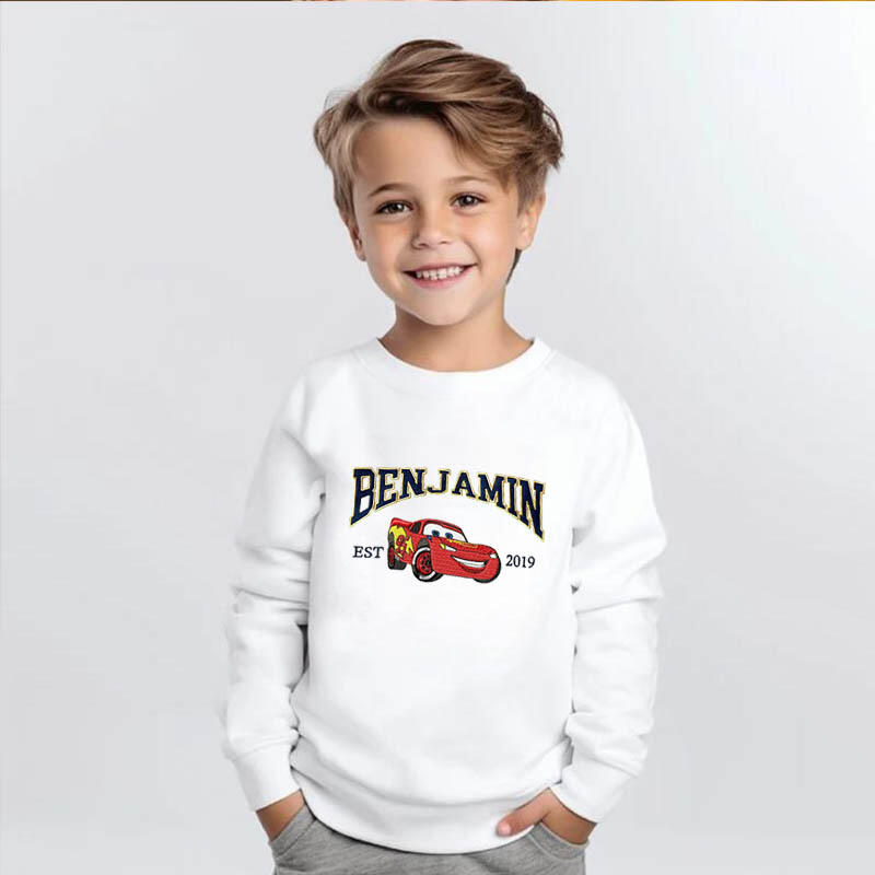 Personalized Kids Embroidered Sweatshirt Custom Cars Cartoon Patterns Creative Gift for Children