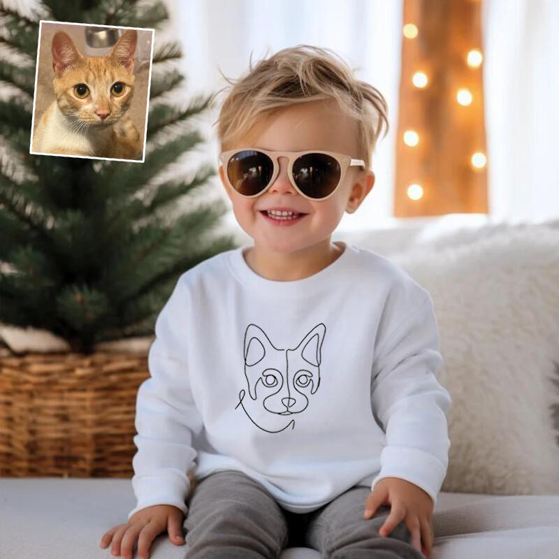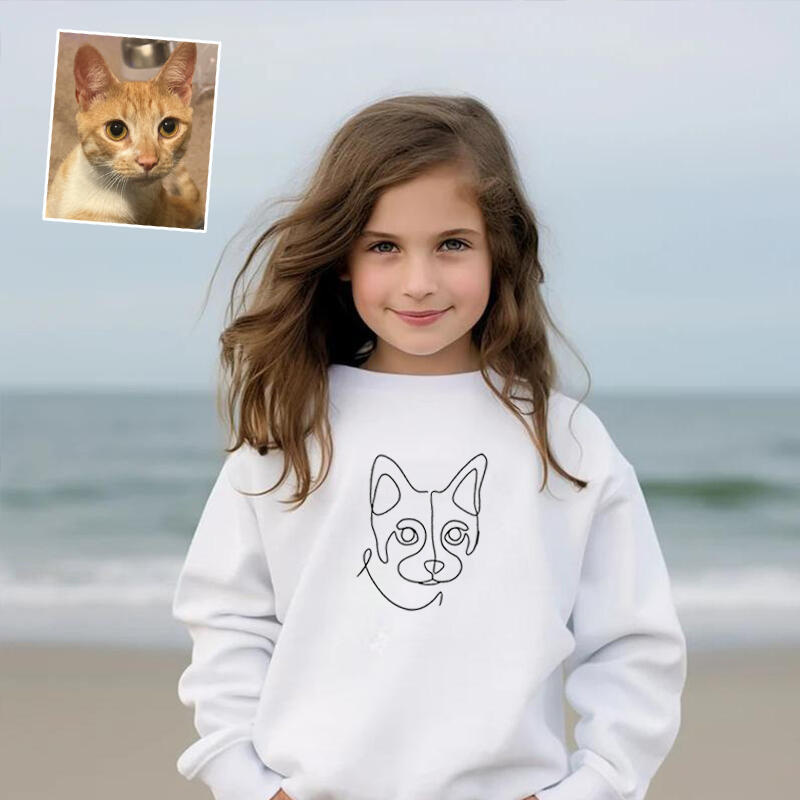 Personalized Kids Embroidered Sweatshirts Customized Line Drawing Warm Gifts For Pet Lovers