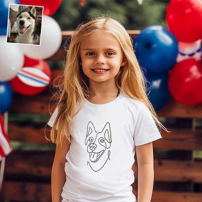 Personalized Kids Embroidered T-Shirt Custom Line Drawing Warm Gift For Children