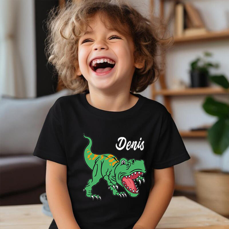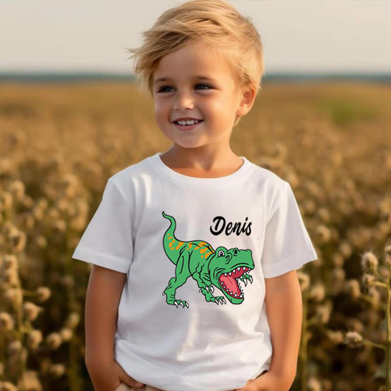 Personalized Kids T-Shirt With Custom Name Band And Cool Dinosaur Pattern Gift For Boys