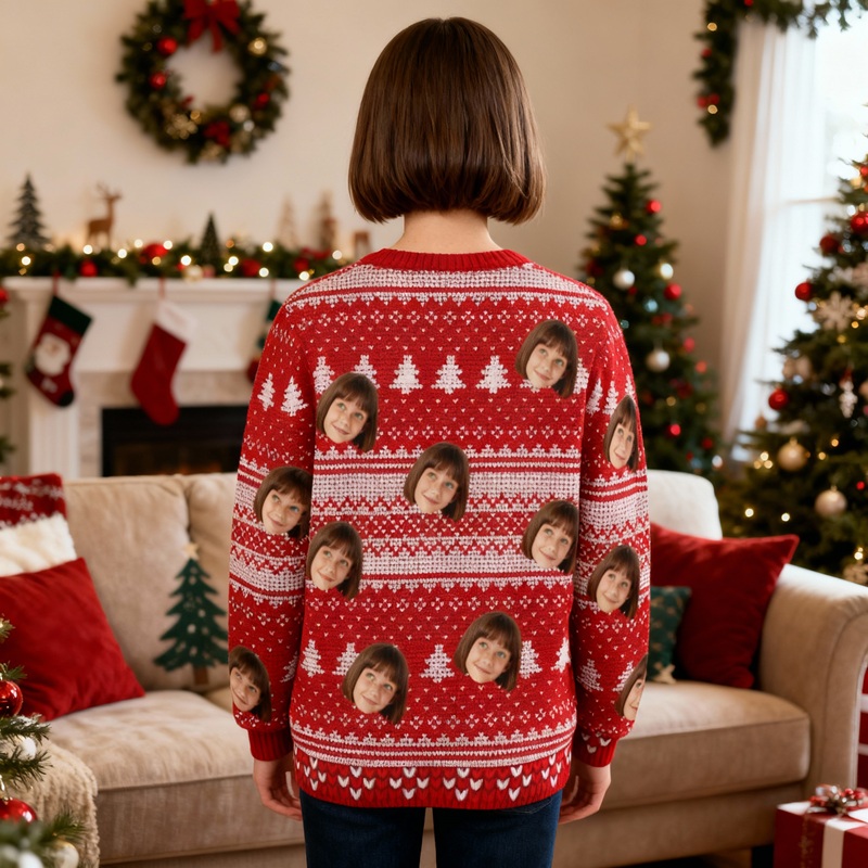 Give gifts this Christmas that are both personal and fun. Imagine the laughter your children will have when they see their pet's expression or a funny family photo. Choose one of our custom ugly Christmas sweaters to create unique, happy, and unforgettable memories, making every wear a special holiday moment!