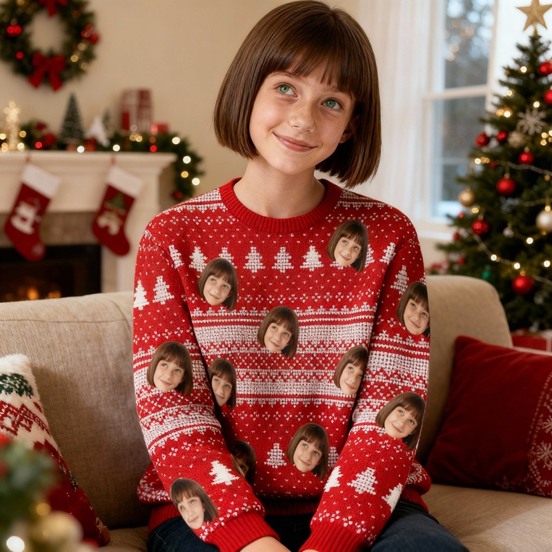 This sweater has a fun custom photo feature that makes it stand out. Pick your child's favorite snapshot (silly family selfies, pup-in-Santa shots, goofy friend photos, or a vivid moment of their own), and we’ll print it in vibrant, long-lasting color right on the sweater. Paired with various Christmas-related patterns, the sweater is filled with a festive vibe. It’s a wearable atmosphere activator, conversation starter and nostalgia trigger for all holiday gatherings.​