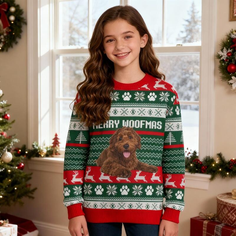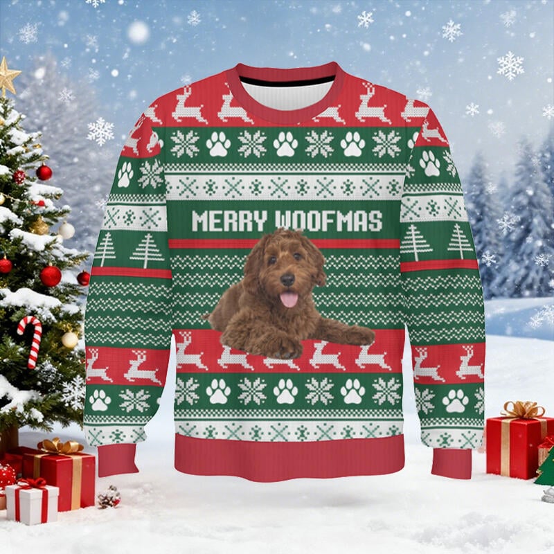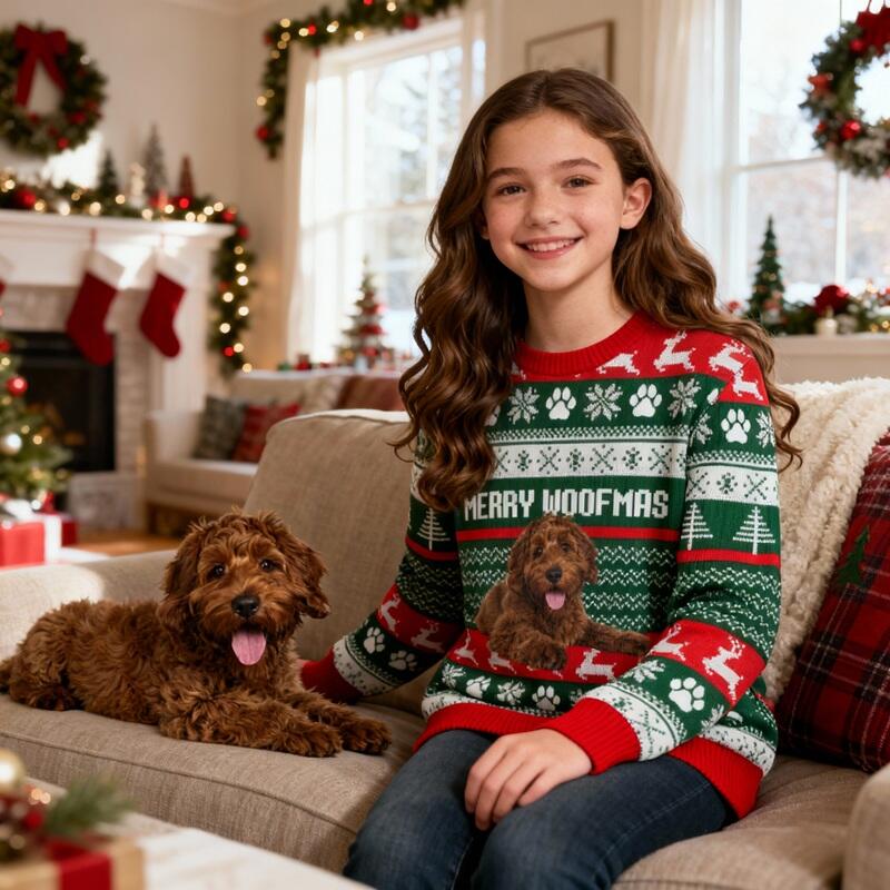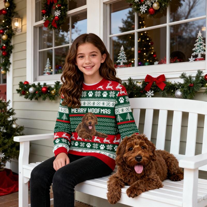 Give gifts this Christmas that are both personal and fun. Imagine the laughter your children will have when they see their pet's expression or a funny family photo. Choose one of our custom ugly Christmas sweaters to create unique, happy, and unforgettable memories, making every wear a special holiday moment!