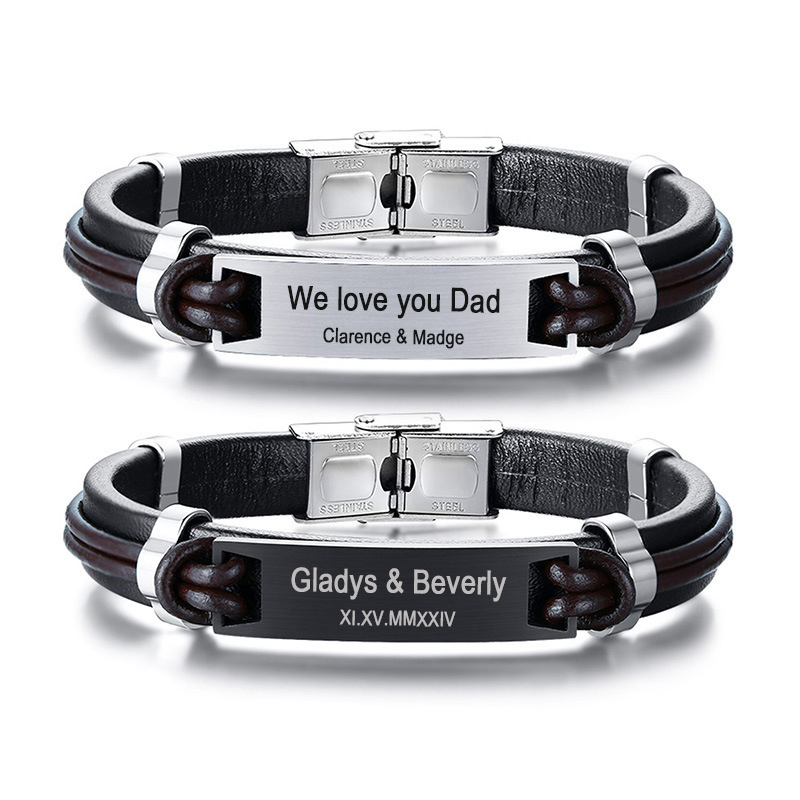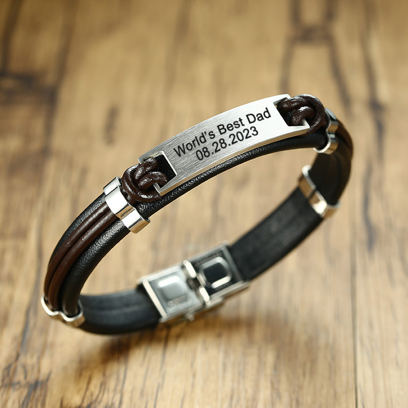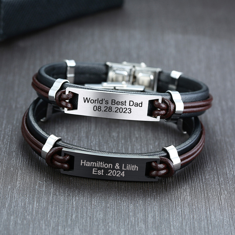 Personalized Leather Men's Bracelet With Custom Text And Date Cool Gift For Dad