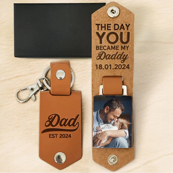 Personalized Leather Photo Keychain Father's Day Gift