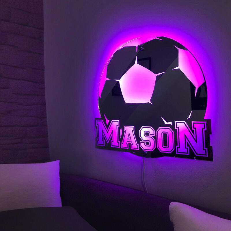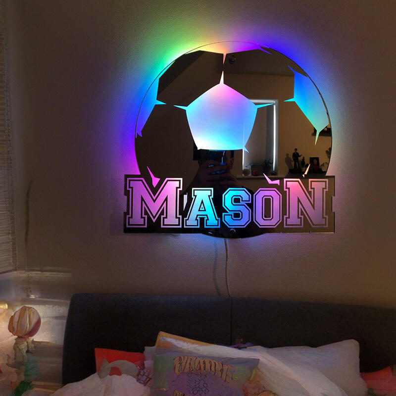 This super stylish personalized name mirror with LED lighting is the perfect and unique version for any young person's bedroom, they will love lighting up the personalized mirror and seeing their name in the light. This eye-catching personalized name mirror is the perfect gift that the recipient will cherish and love for many years to come. Includes LED lighting remote control and chrome wall mount.