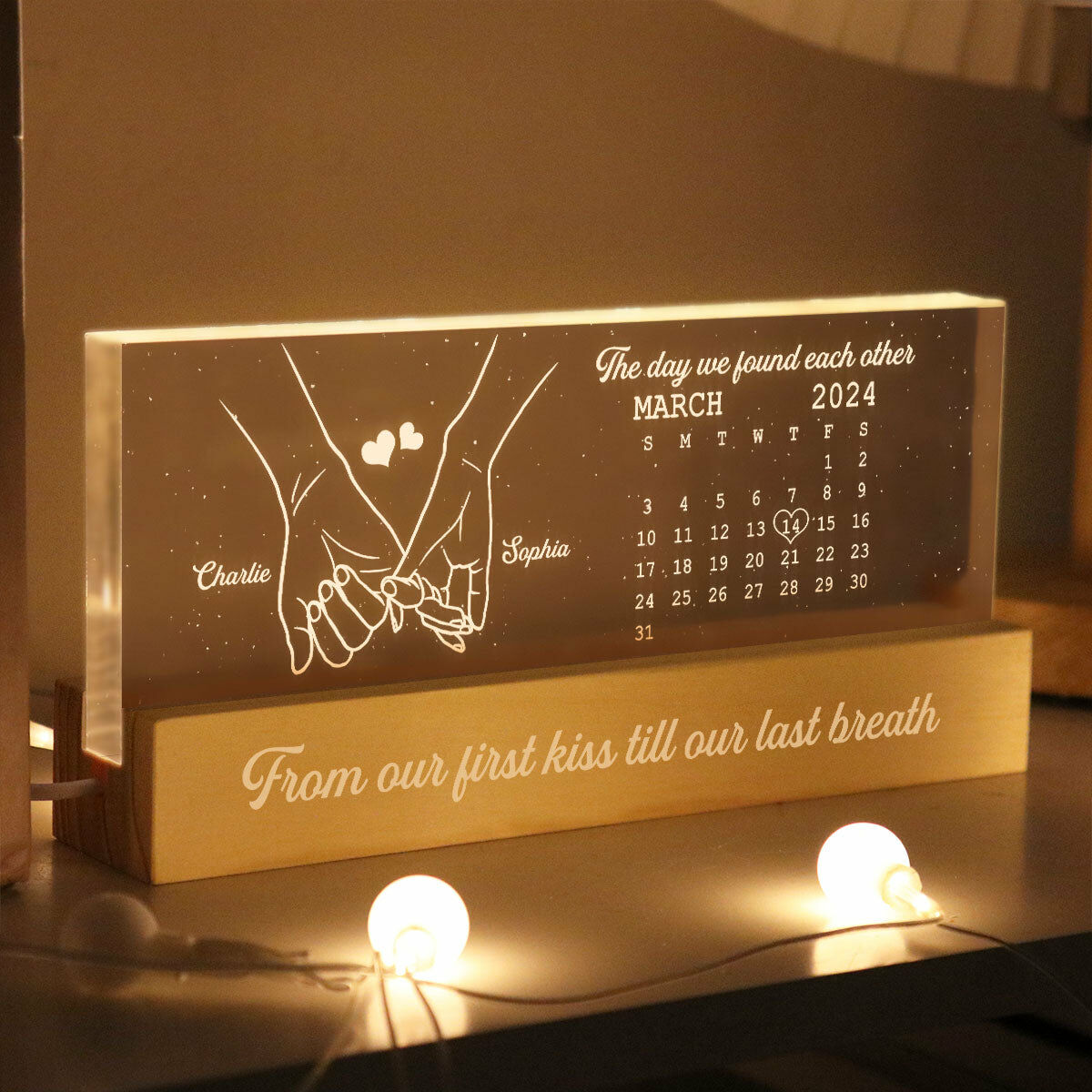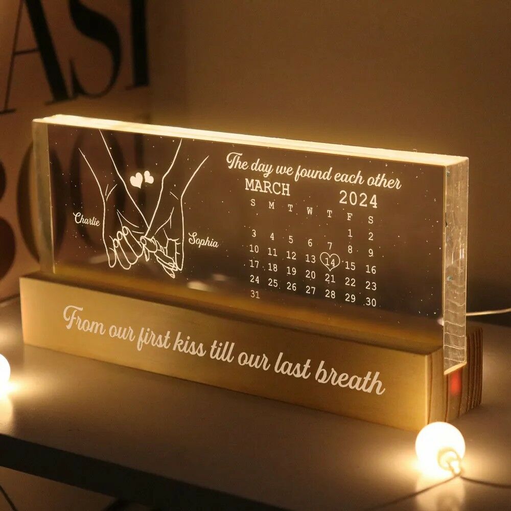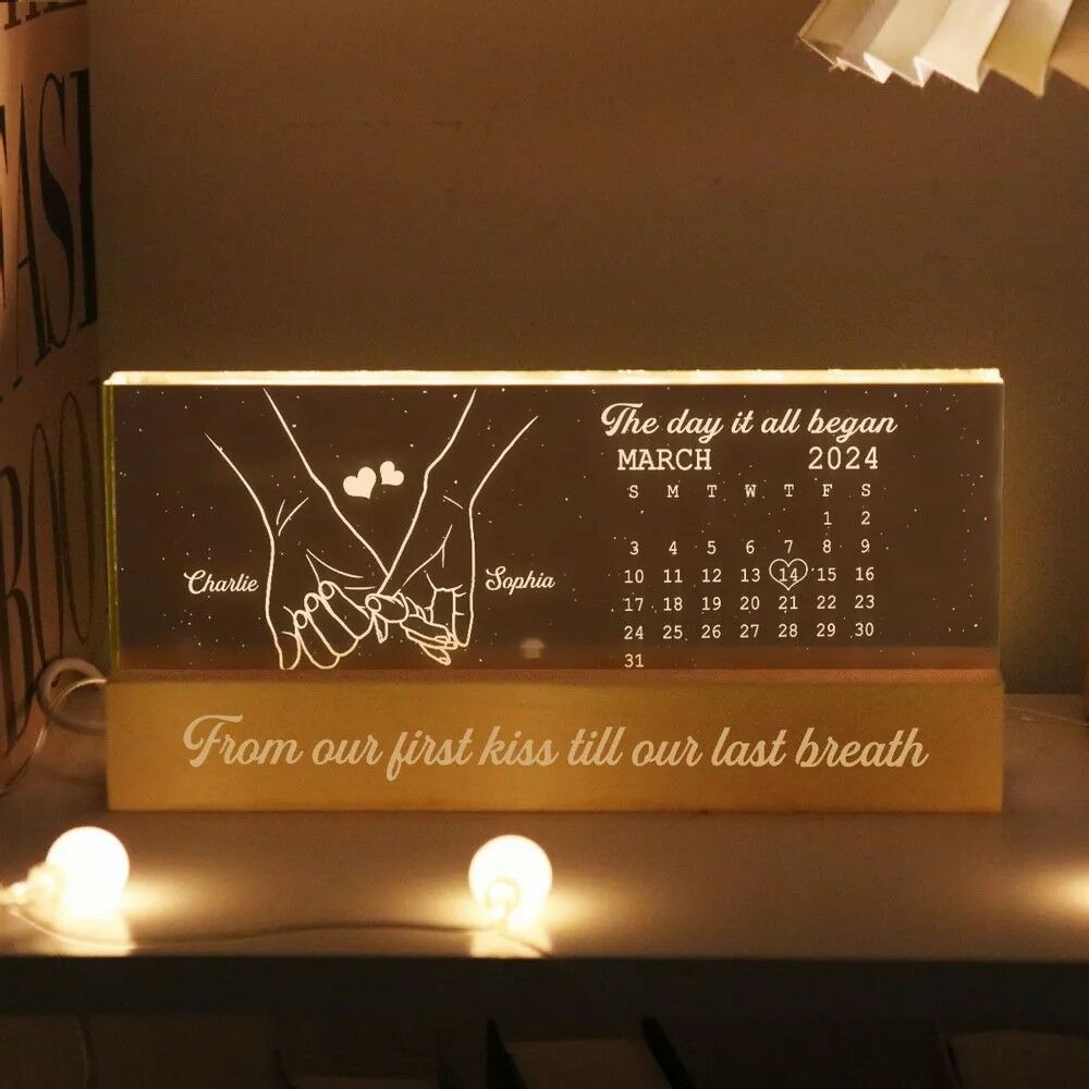 Personalized Led Light Custom Calendar With Holding Hands Pattern Gift For Couples