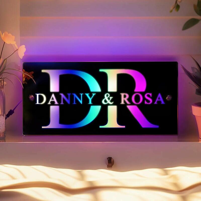 Personalized Led Mirror Light Customized Name Warm Gift For Couple