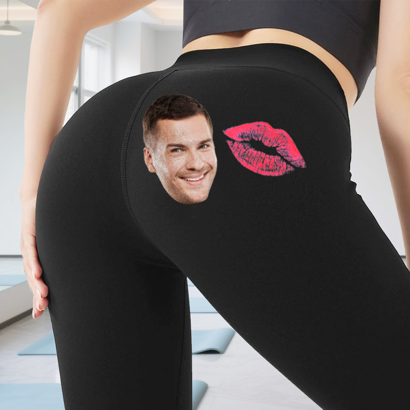 Personalized Leggings Custom Boyfriend's Head Photo with Kiss Design Perfect Gift for Her Lovers