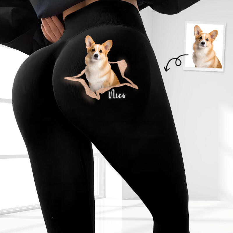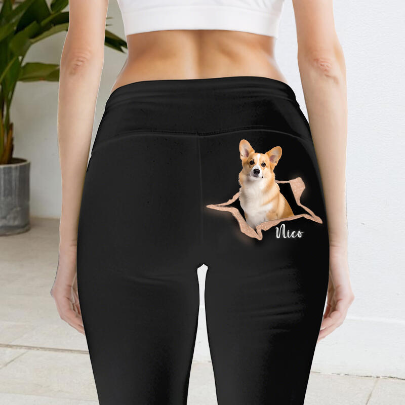 Personalized Leggings Custom Pet Photo Fun Crack Pattern Design Creative Gift for Her Pet Lovers