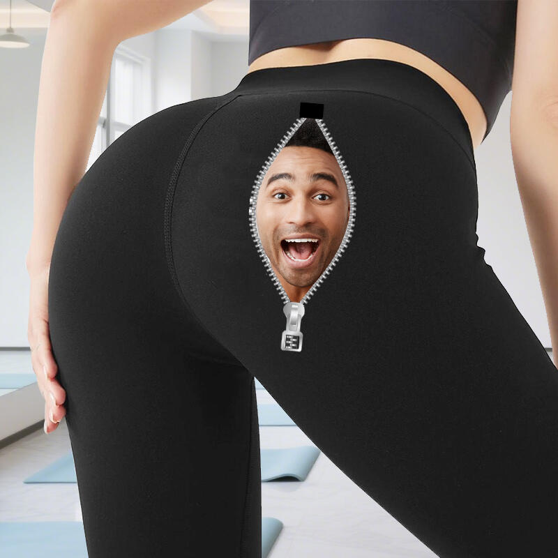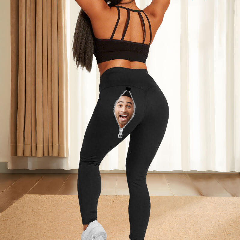 Personalized Leggings Custom Photo Zipper Funny Surprise Design Creative Gift for Her Lovers