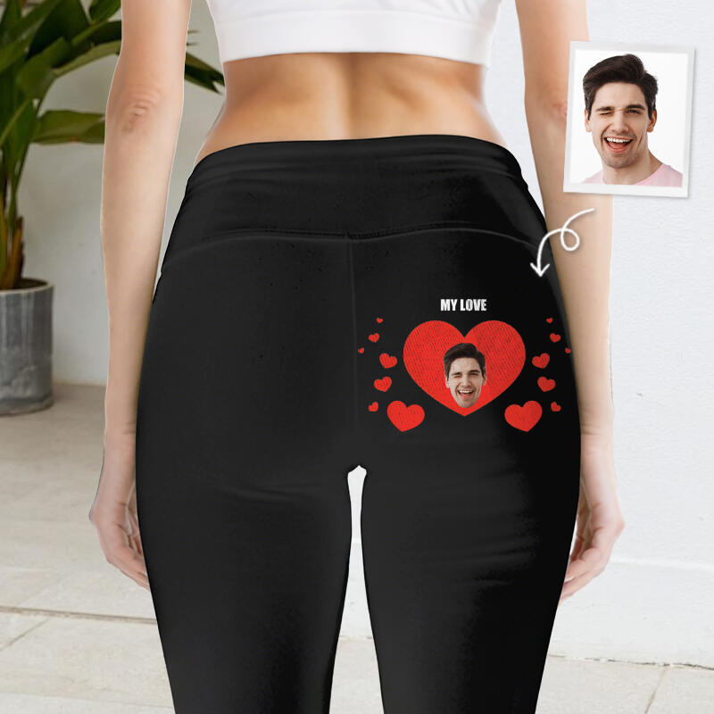 Personalized Leggings My Love Custom Head Photo Sparkling Heart Design Perfect Gift for Lovers