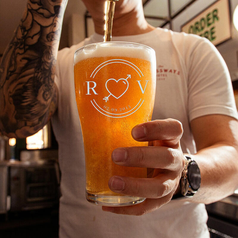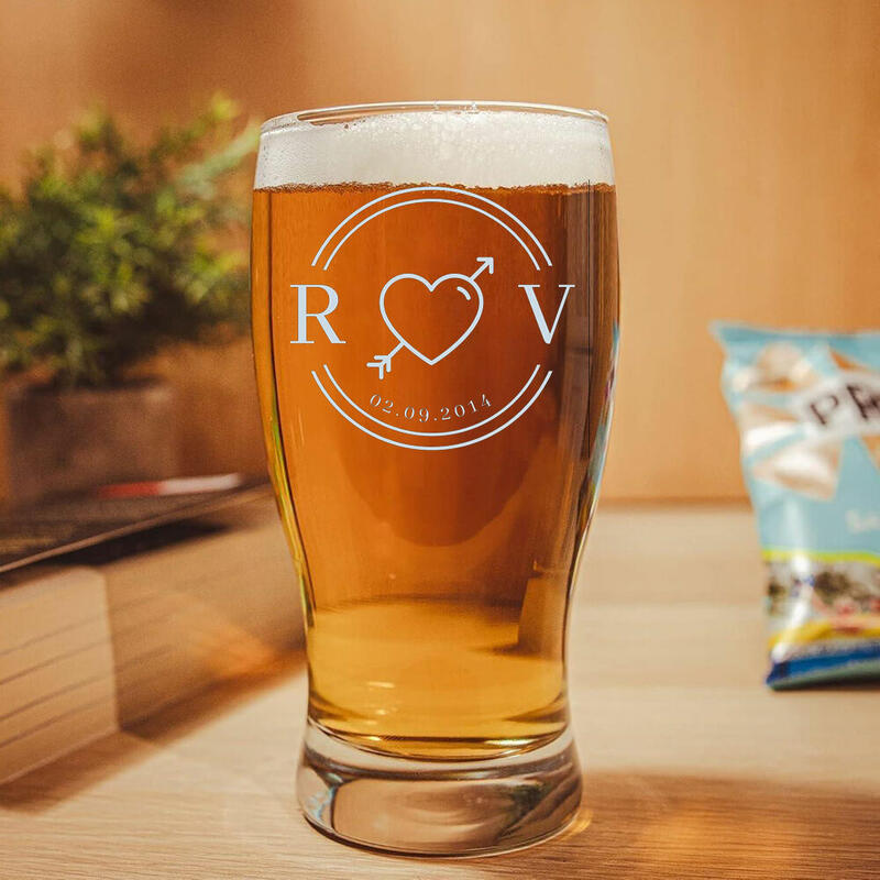 Personalized Letter Beer Glass with Custom Date Romantic Gift for Valentine's Day