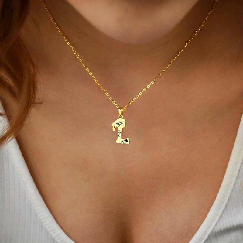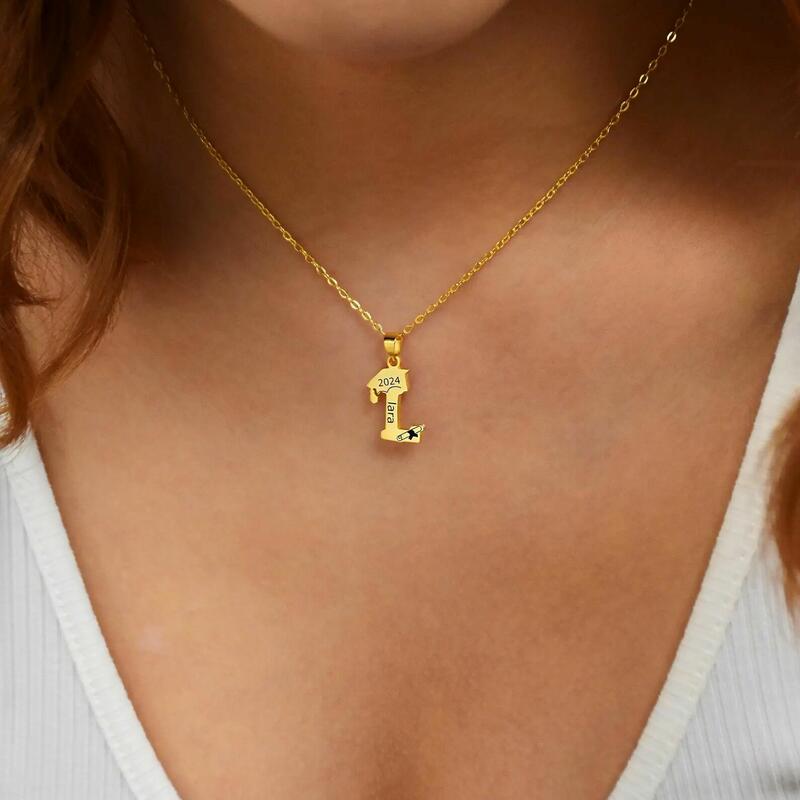 Personalized Letter Necklace with Bachelor's Hat Gift for Graduates
