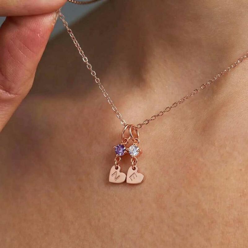 Personalized Initials and Birthstone Heart Necklace - A Gift of Love for Mothers and Grandmothers.