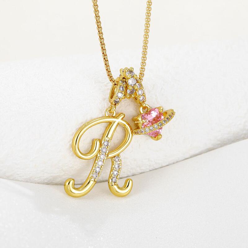 Personalized Letter Necklace with Pink Diamonds Beautiful Gift for Your Girlfriend