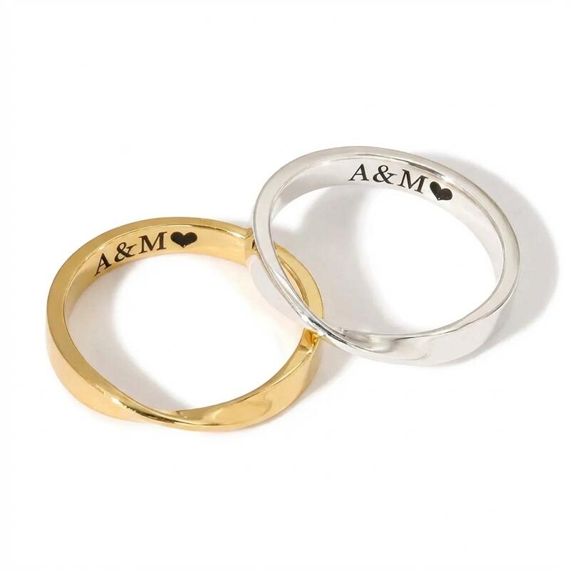 Custom-designed single rings with personalized inscriptions. These minimalist rings embody a unique sense of personal ritual. Stripped of unnecessary design elements, clean lines define a versatile silhouette. The polished finish provides a delicate texture, ensuring a comfortable and flattering fit. Perfect for everyday wear or unconventional outfits.