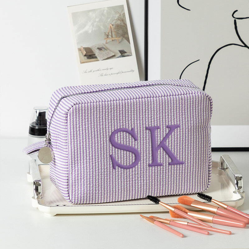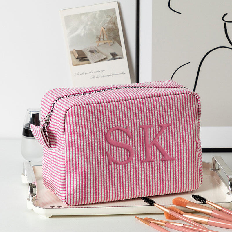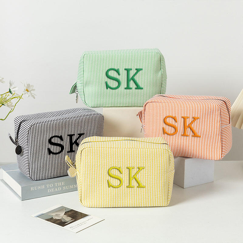 Personalized Letter Seersucker Cosmetic Bag Simple Gift for Sister