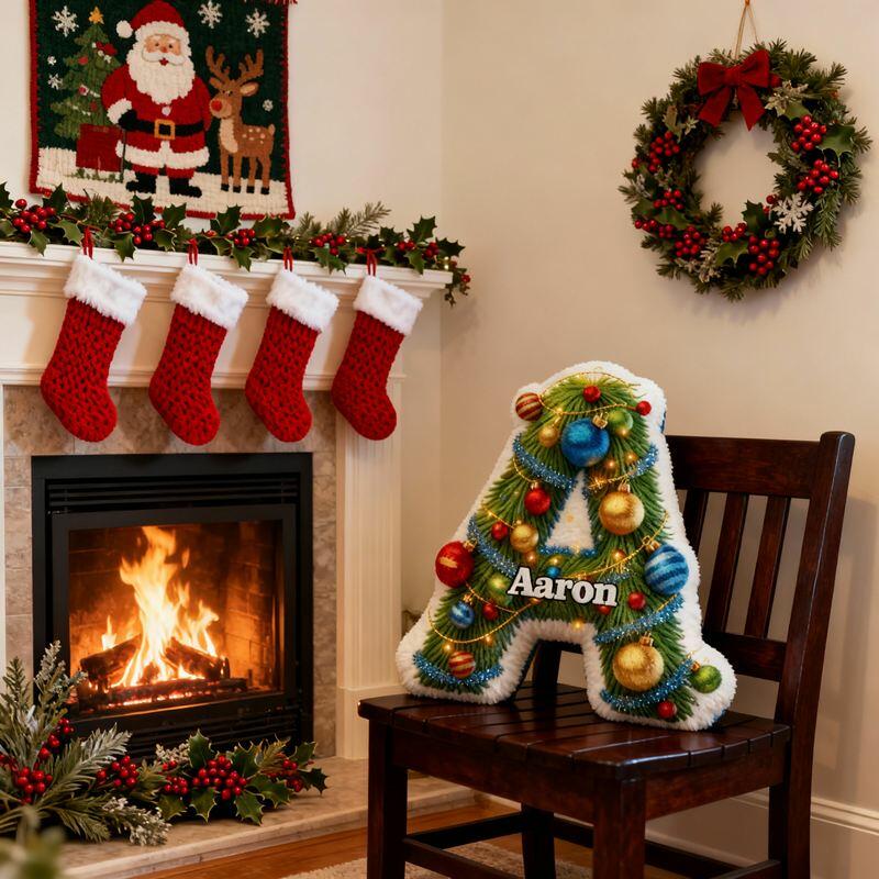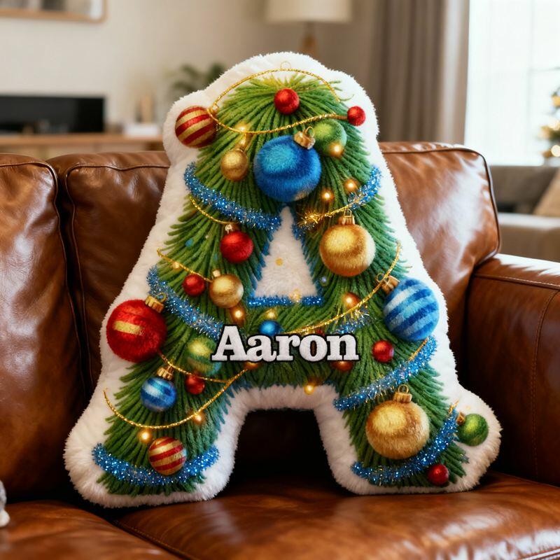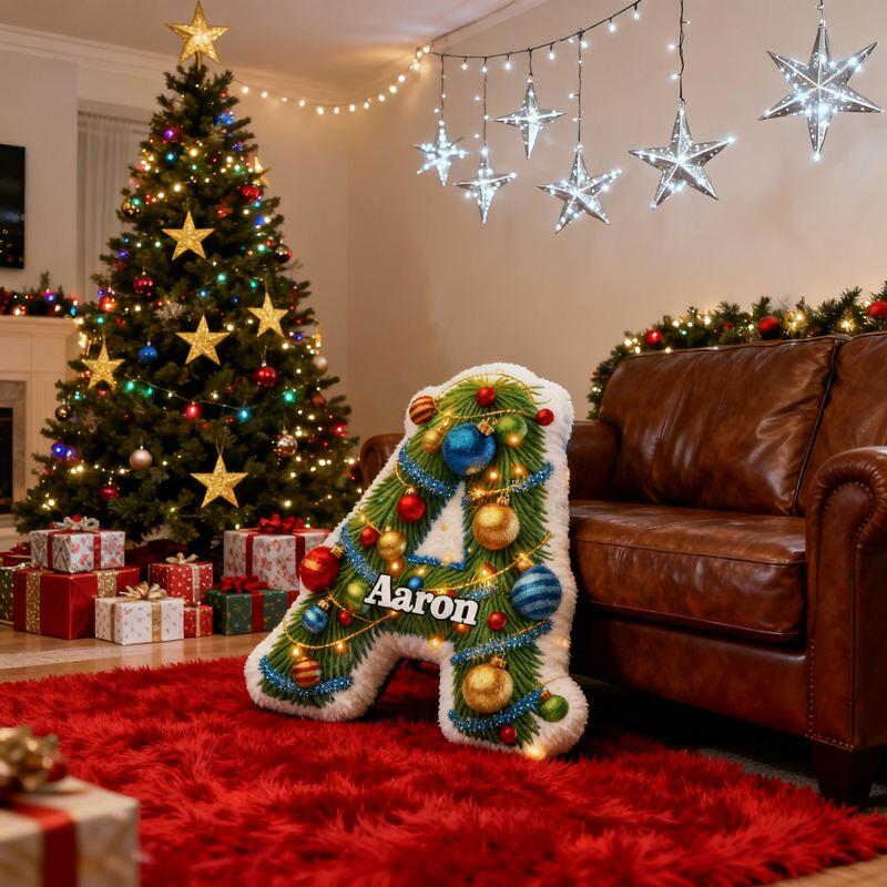 Personalized Letter-Shaped Pillow Christmas Tree String Light Style Design Gift for Children