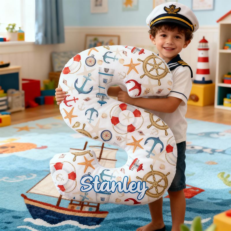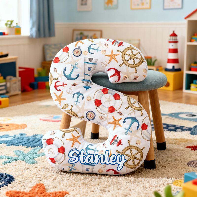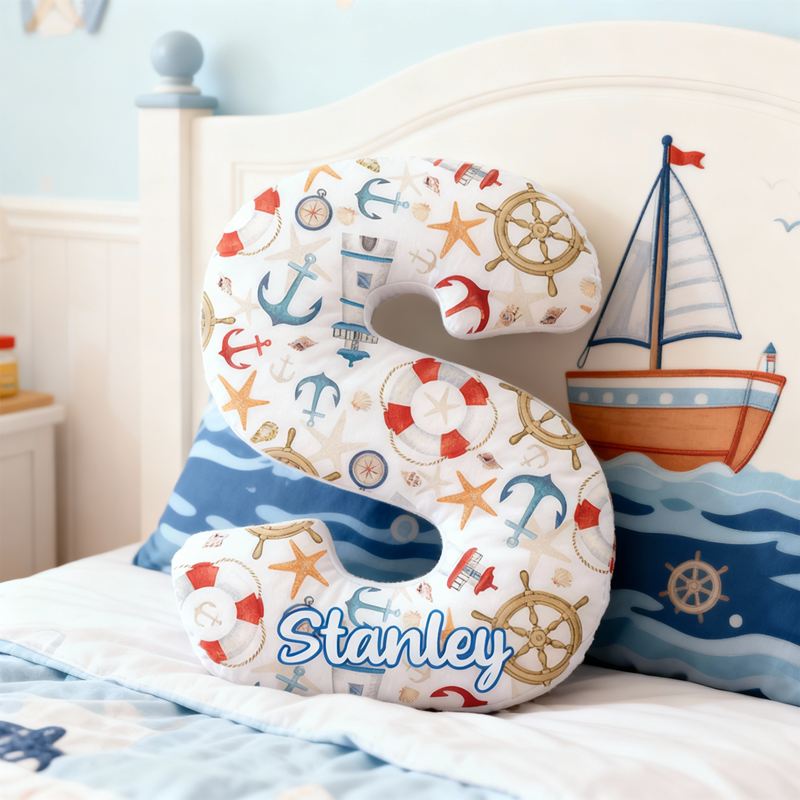 Personalized Letter-Shaped Pillow Lighthouse Anchor and Rudder Design Creative Gift for Kids