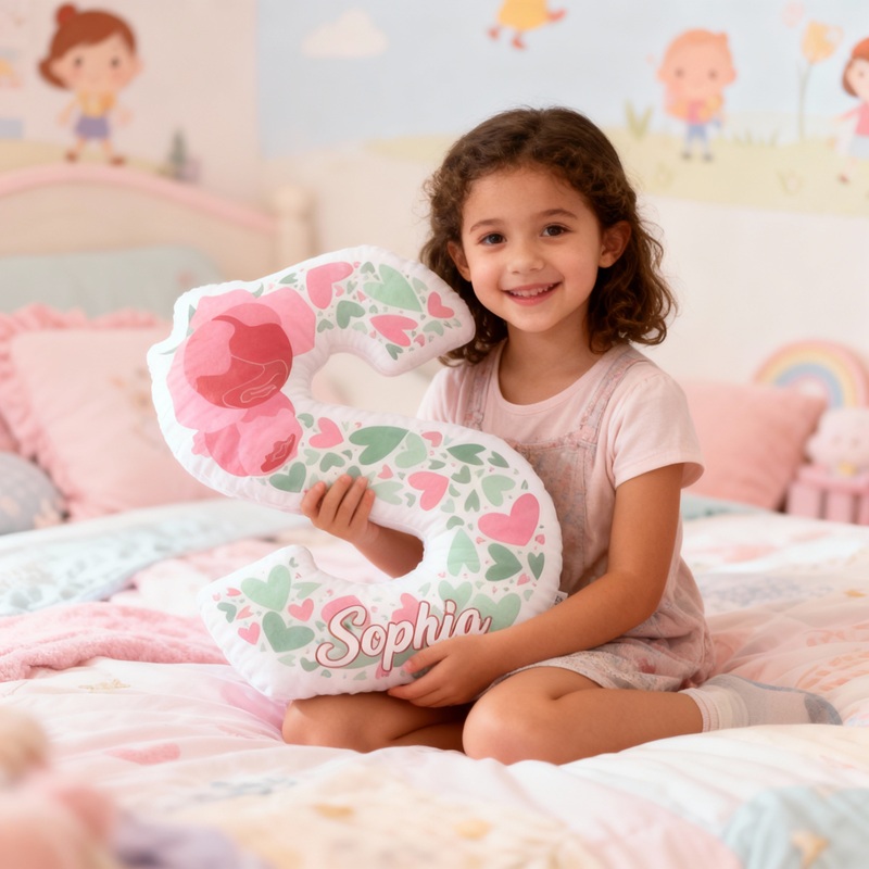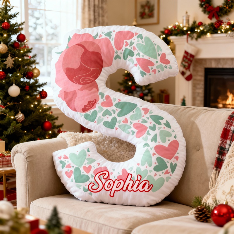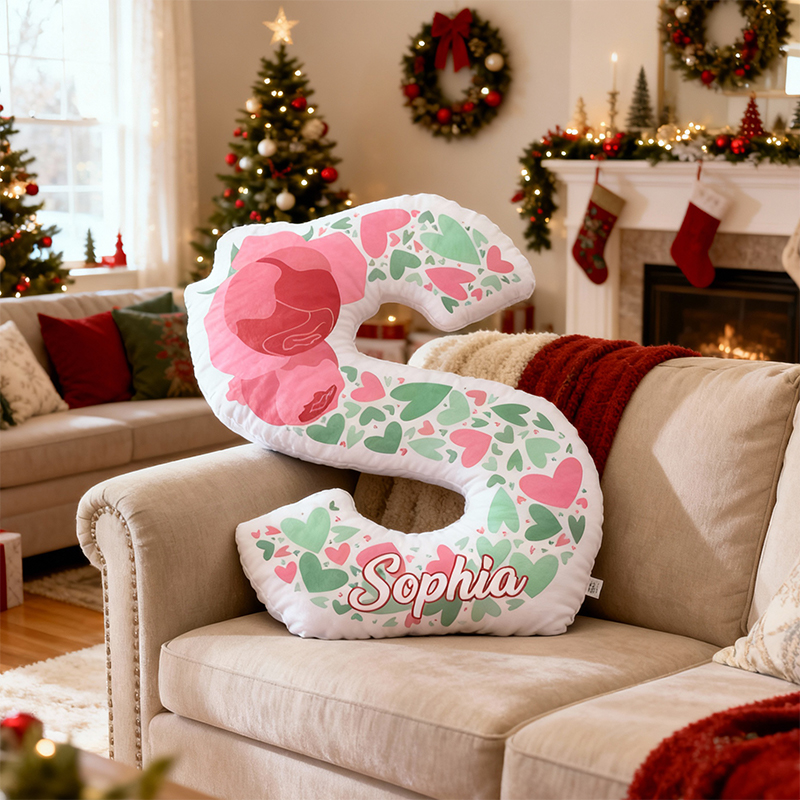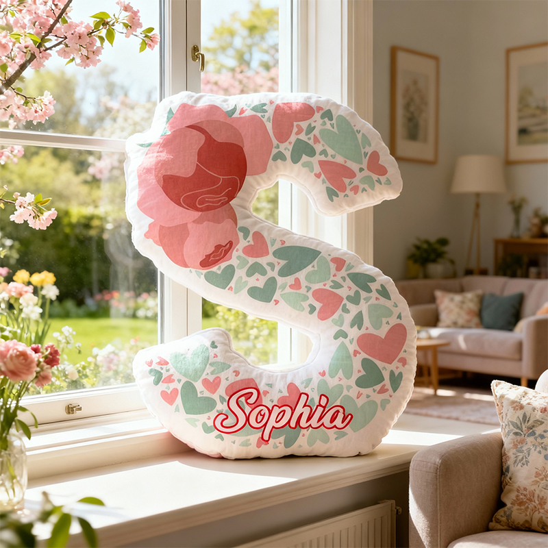Personalized Letter-Shaped Pillow Rose Hearts Pattern Design Exquisite Gift of Children