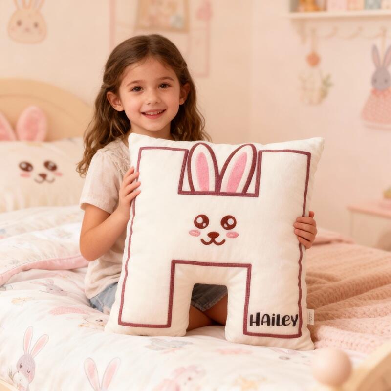 Personalized Letter-Shaped Pillow White Rabbit Alphabet Design Cute Gift for Girls