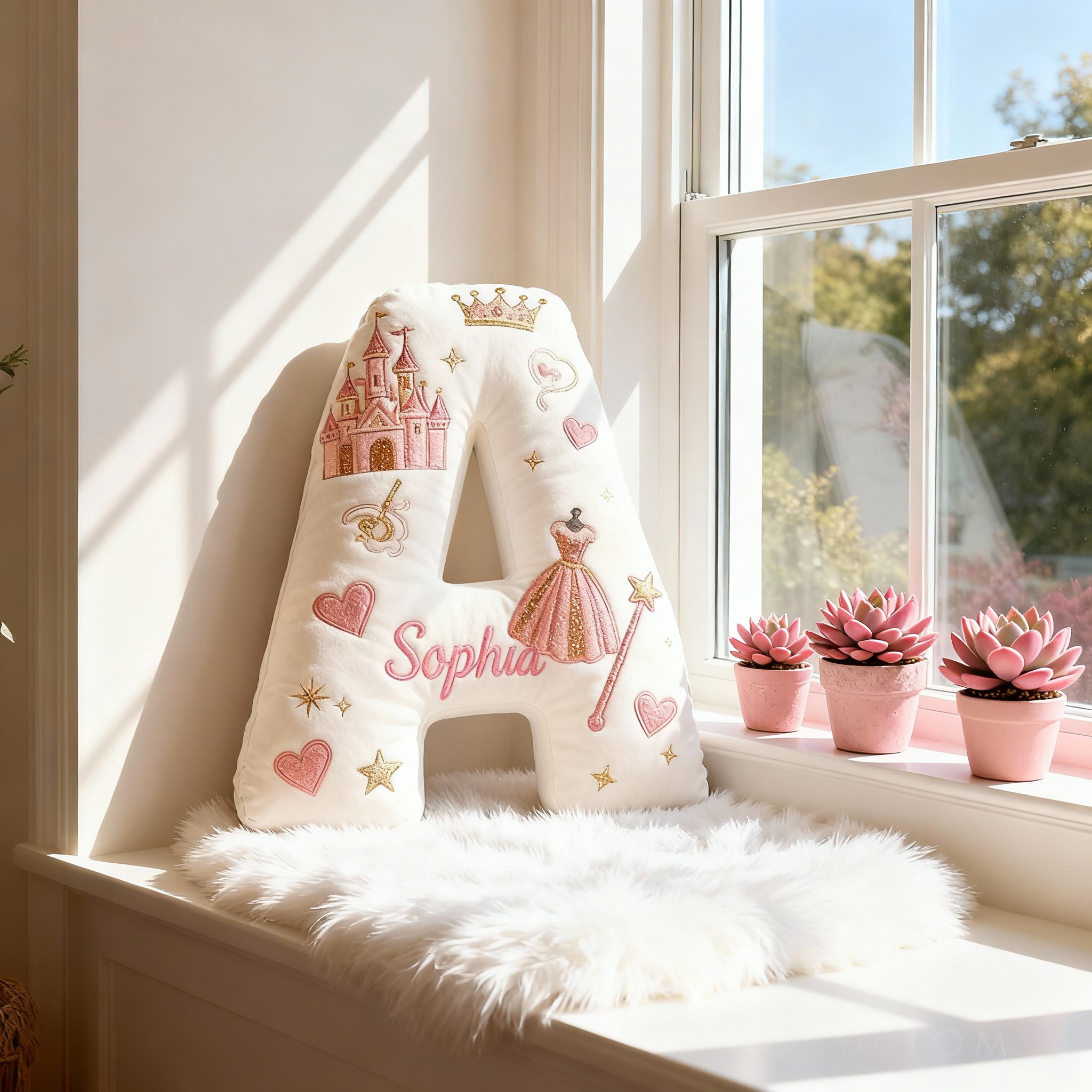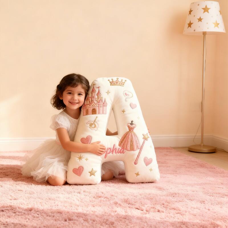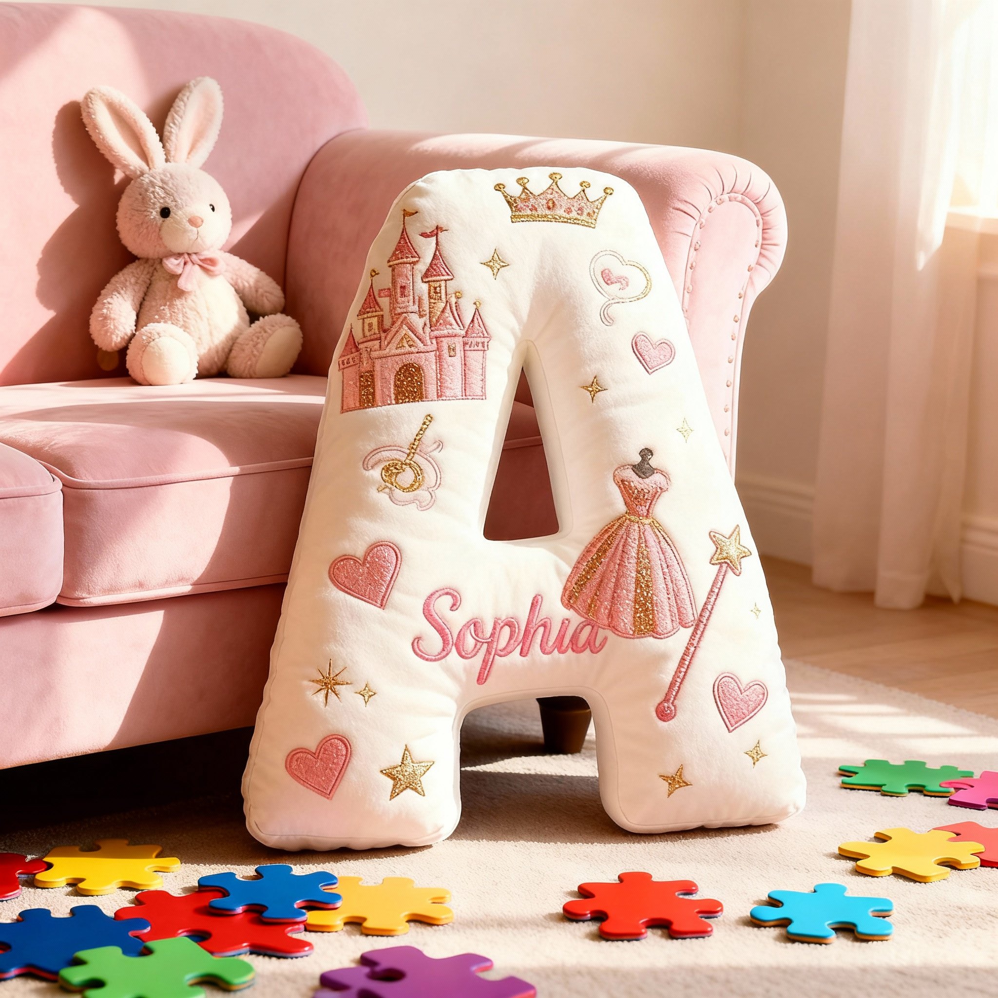 Personalized Letter-Shaped Pillows with Customizable Names and Castle Designs Gift for Children