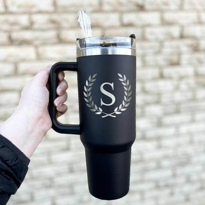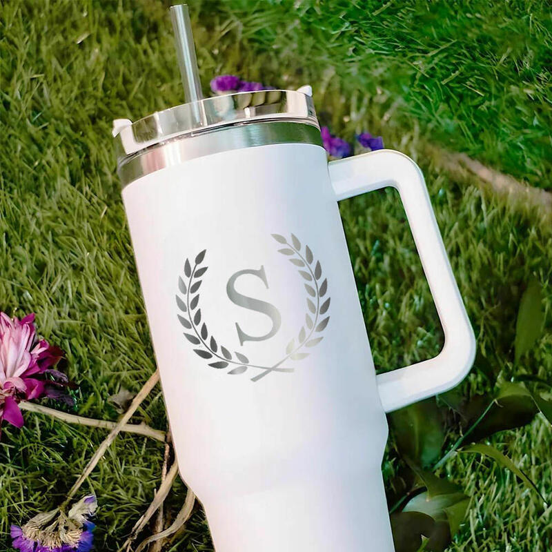 Personalized Letter Tumbler with Leaves Pattern Stylish Gift for Friend