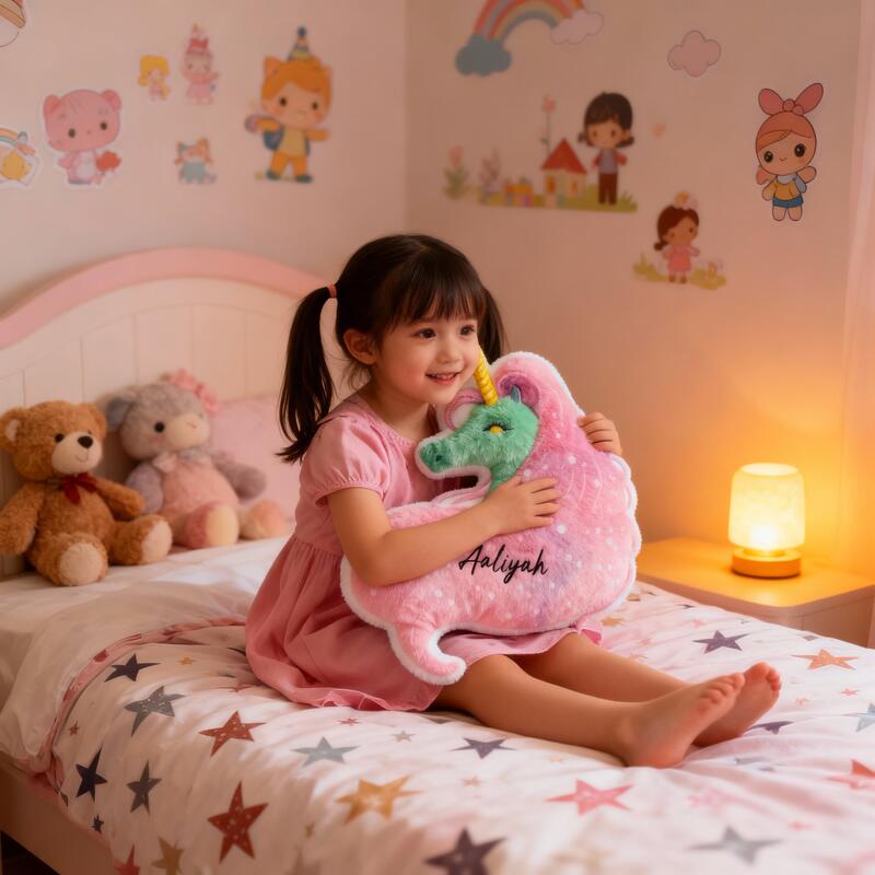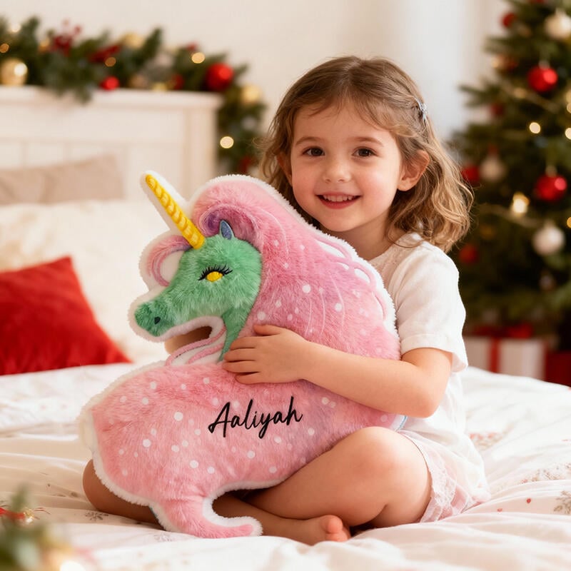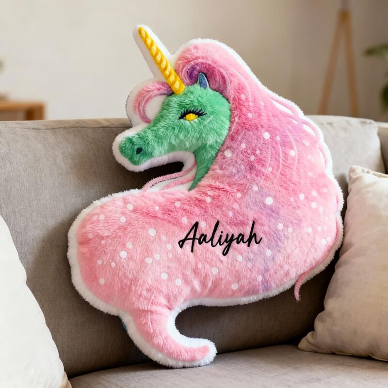 Personalized Long-Haired Unicorn Pillow Custom Name Cute Christmas Gift for Your Daughter