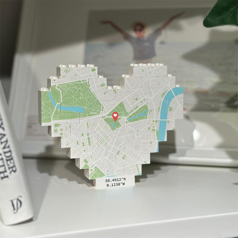 Personalized Map Building Brick Heart Shaped Design Creative Gift for Friend