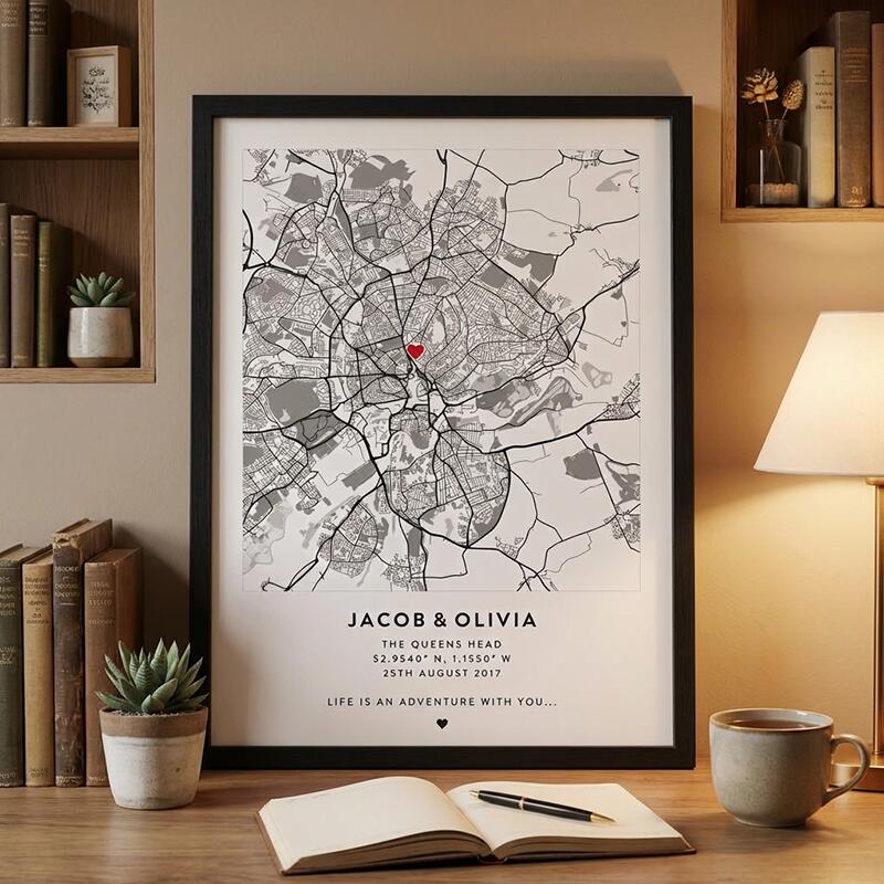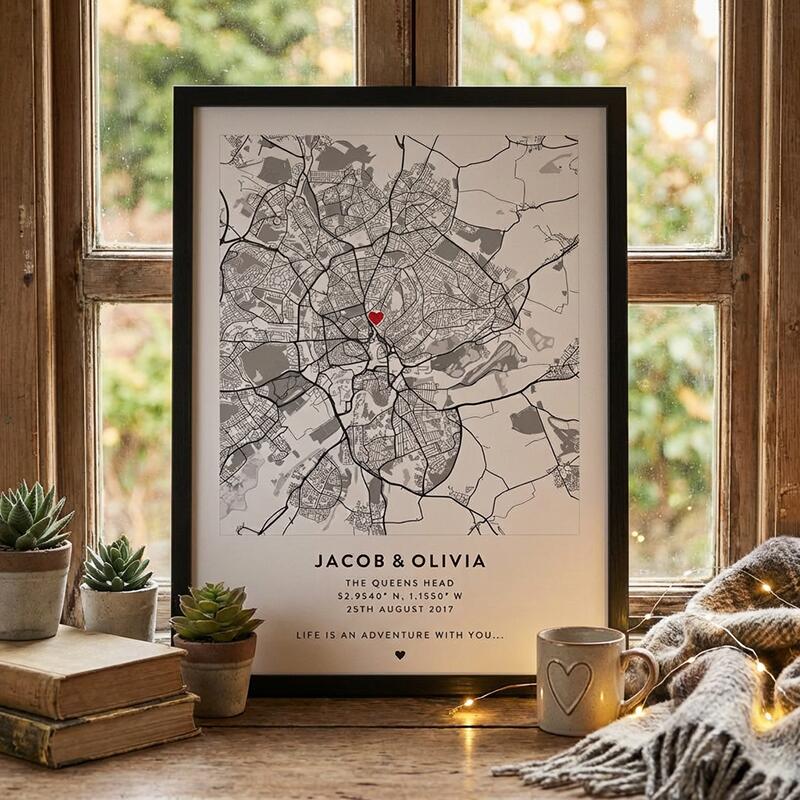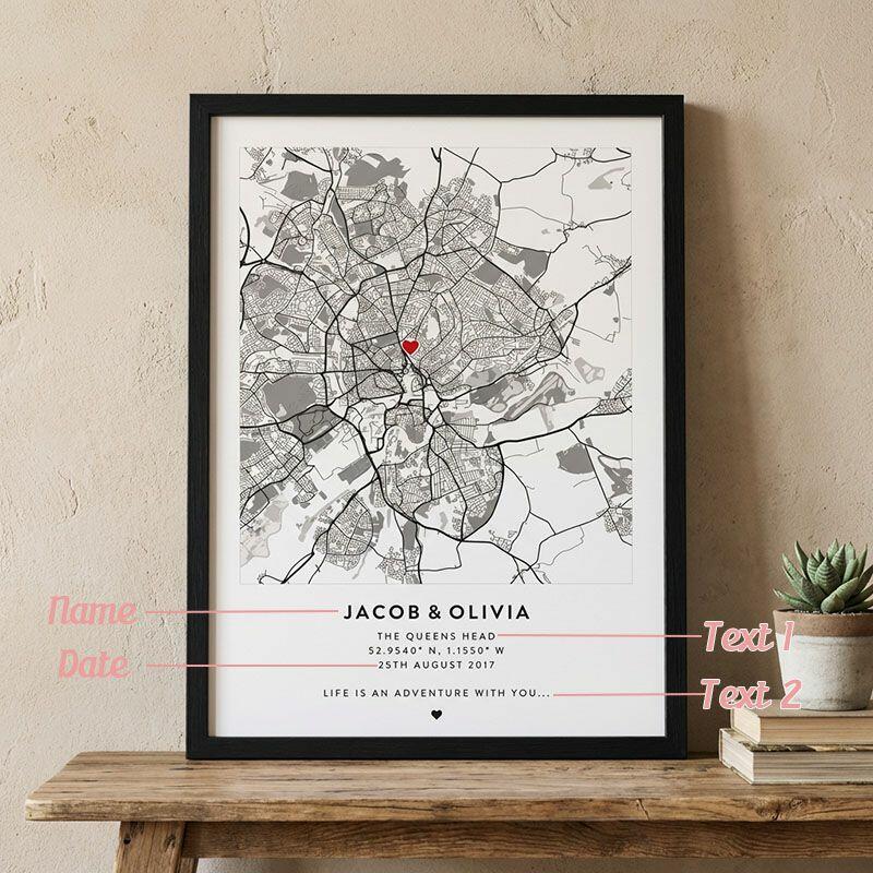 Personalized Map Frame Romantic Gift for Valentine's Day