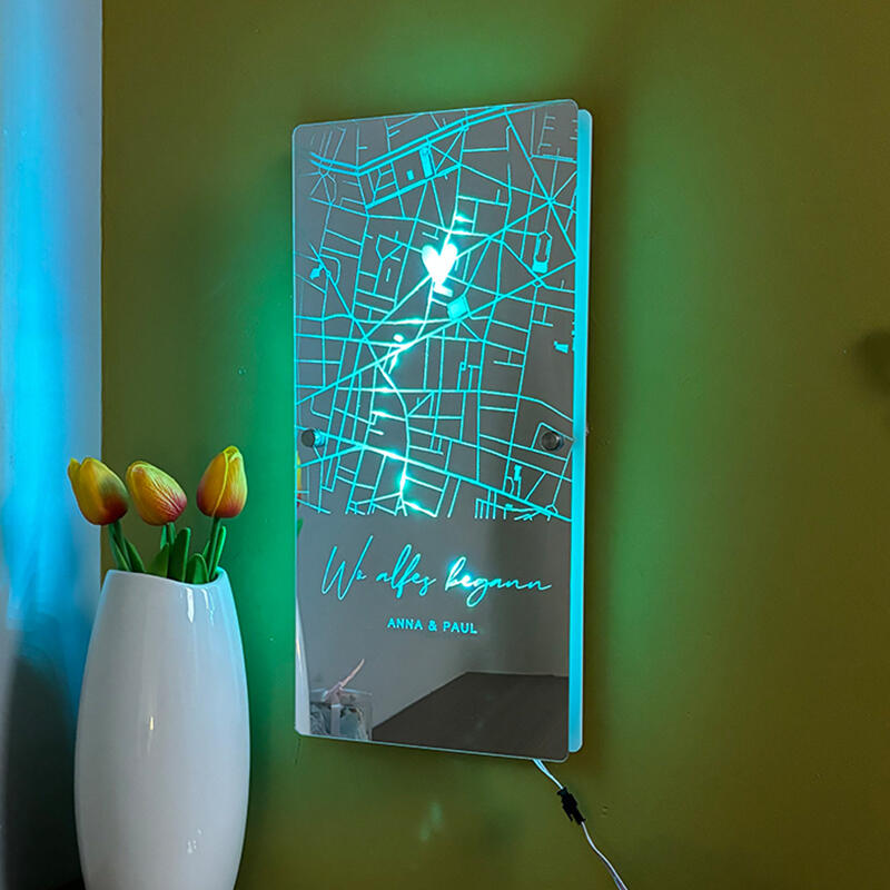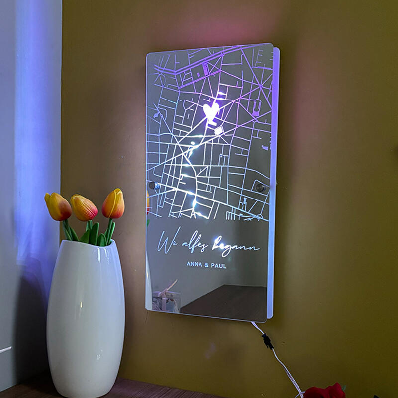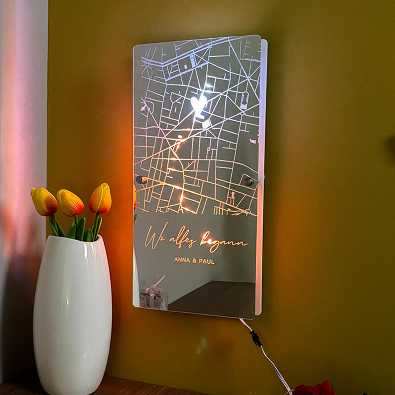 Personalized Map Mirror Lamp Sweet Gift For Couples