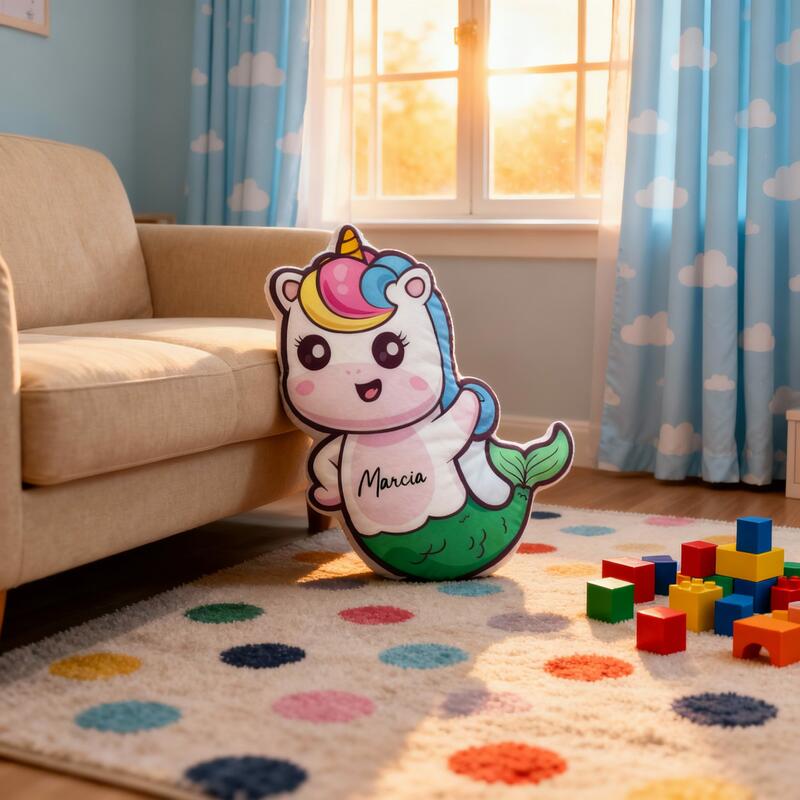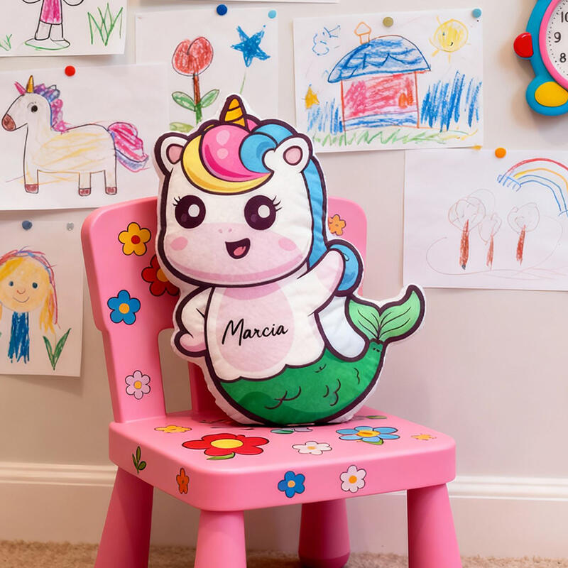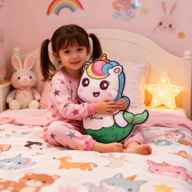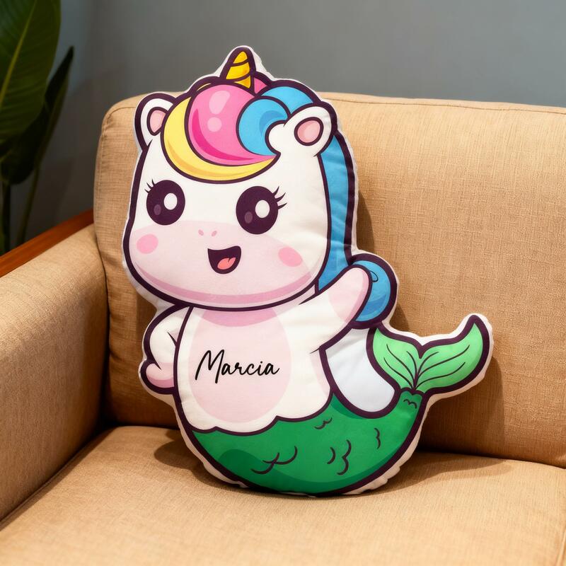 Personalized Mermaid Unicorn Pillow Custom Name Cute Christmas Gift for Children