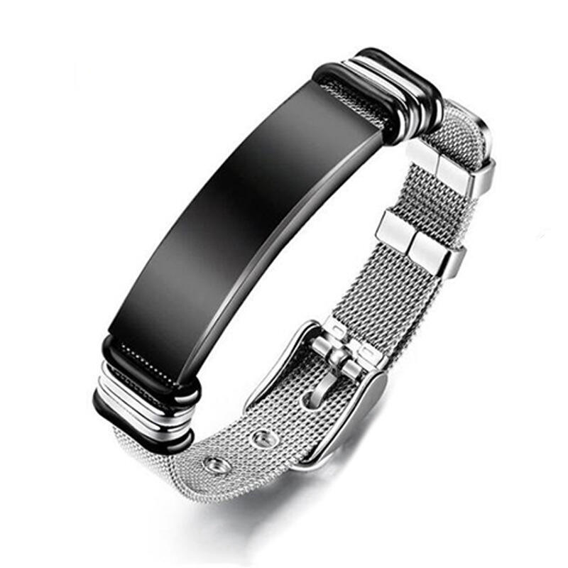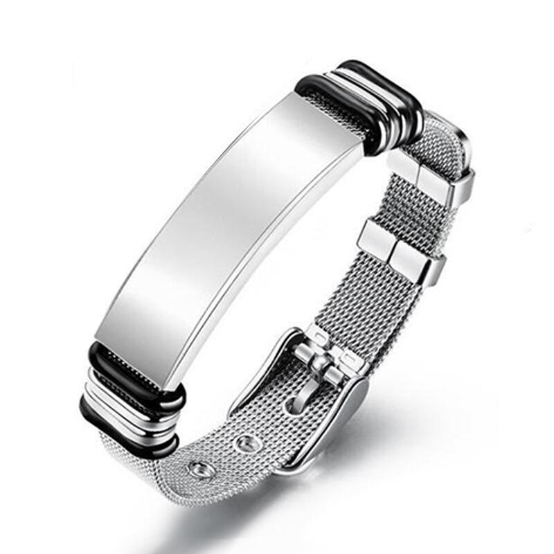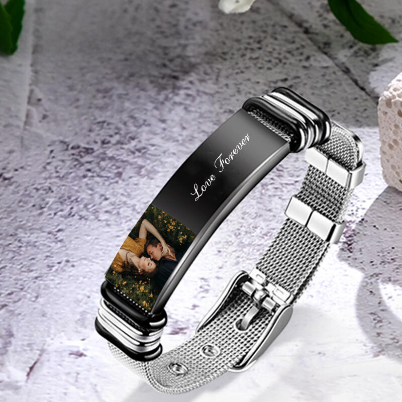 Personalized Mesh Stainless Steel Men's Bracelet Customized Family Photo and Name